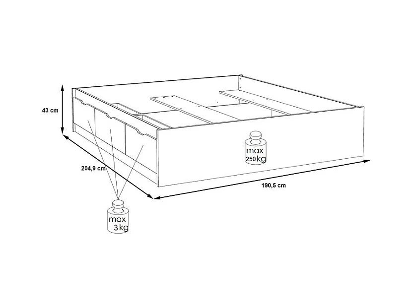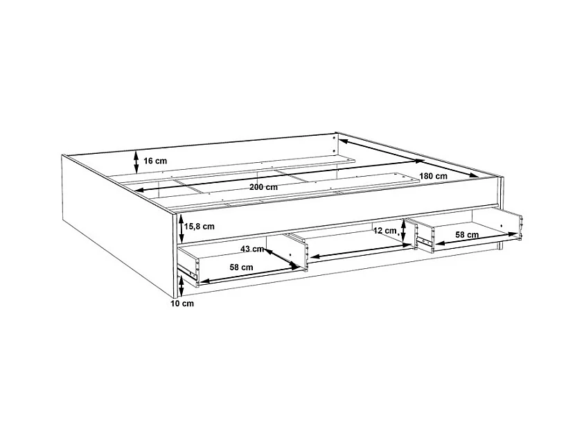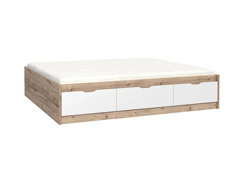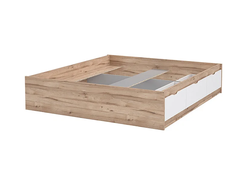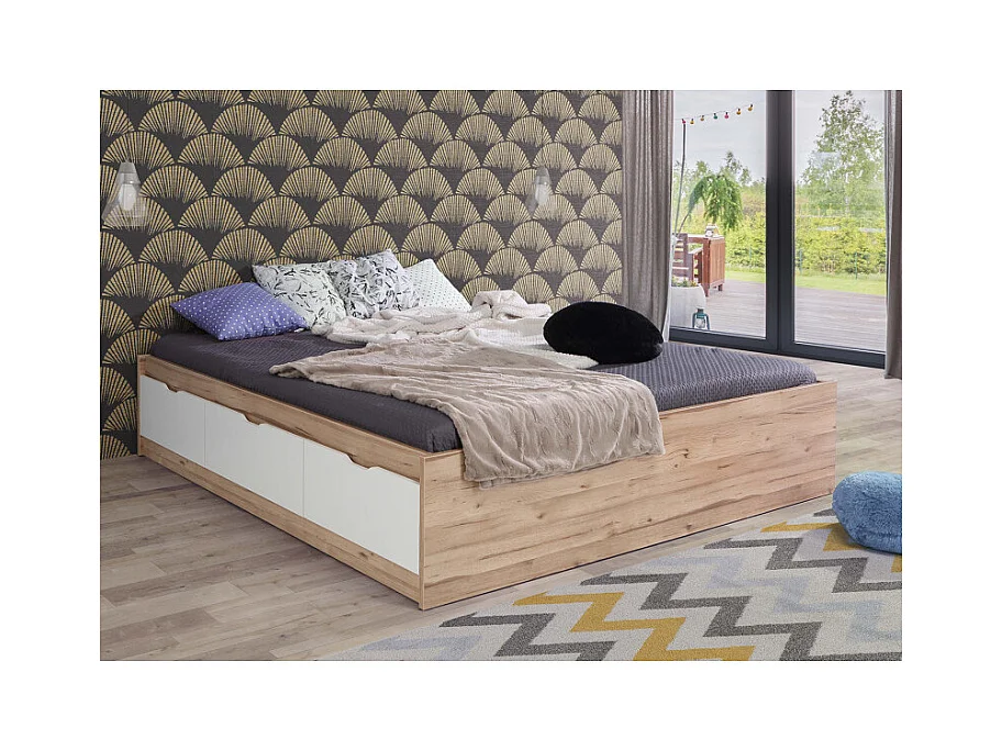 Lit 180 x 200 cm 3 tiroirs décor chêne naturel et blanc mat - ALBANE