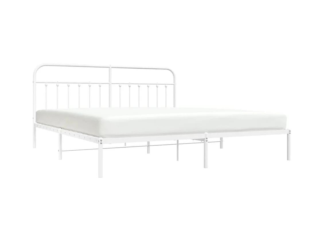 Lit-193x203 cm métal avec tête de lit blanc EGGB12153