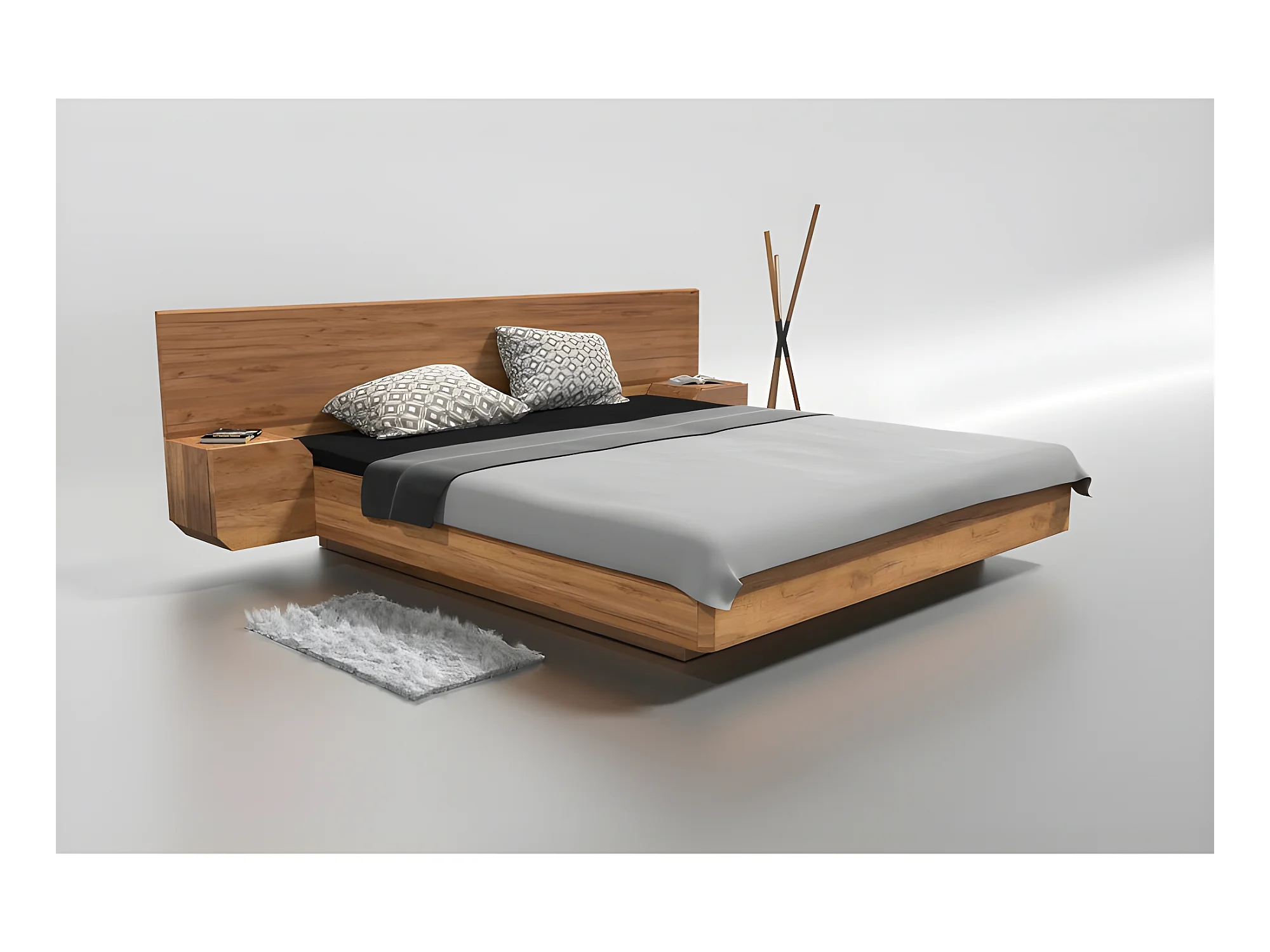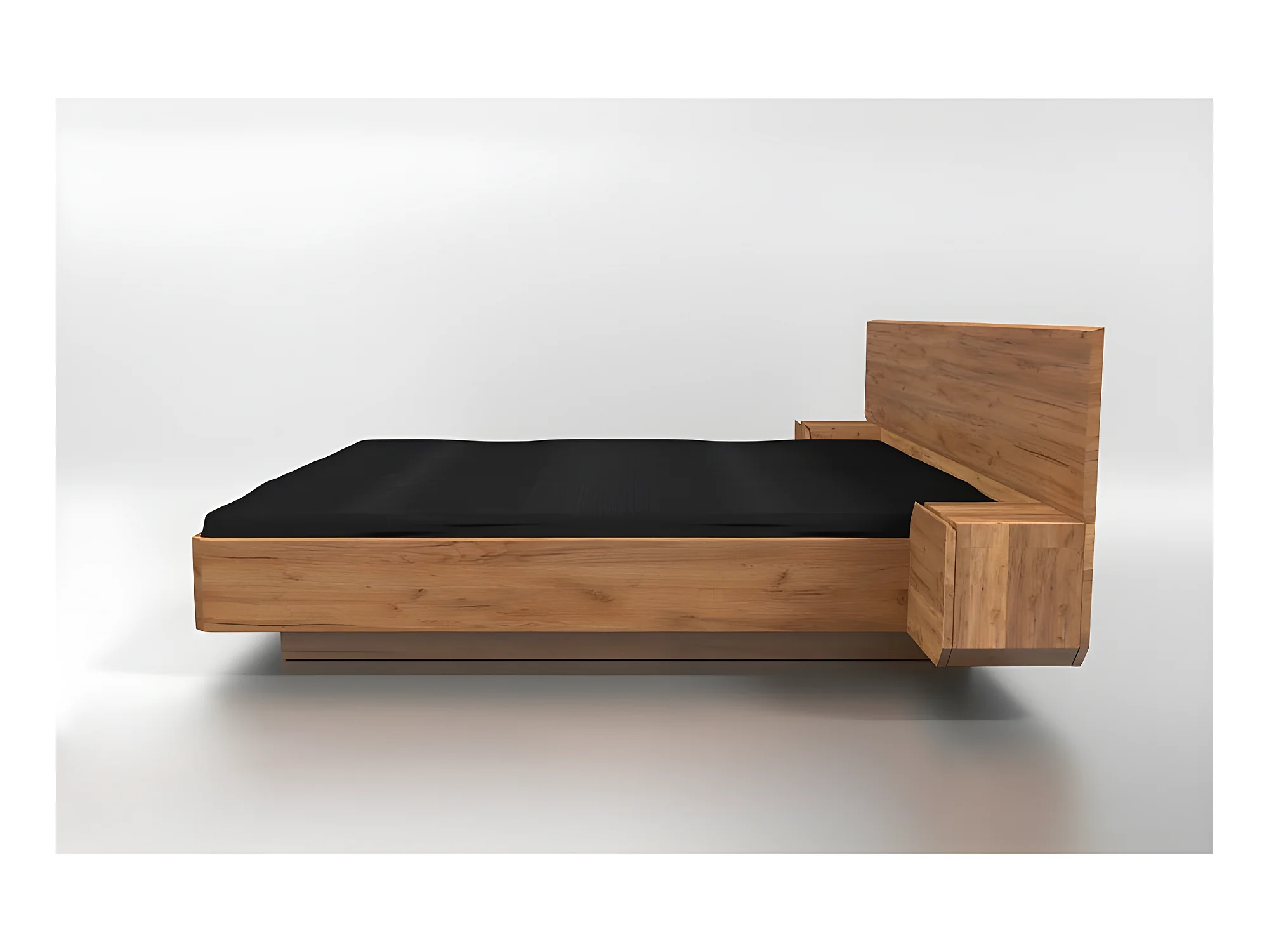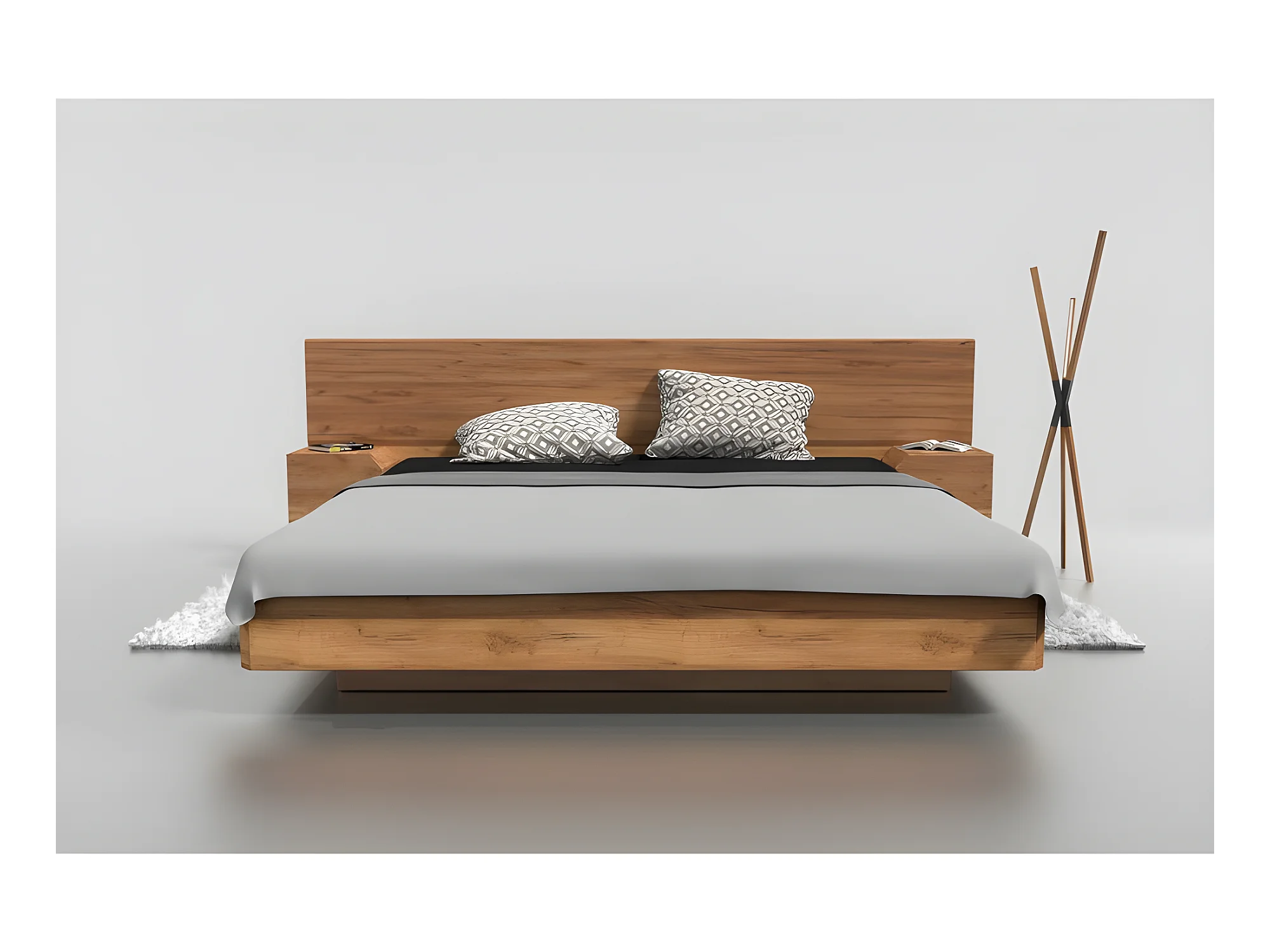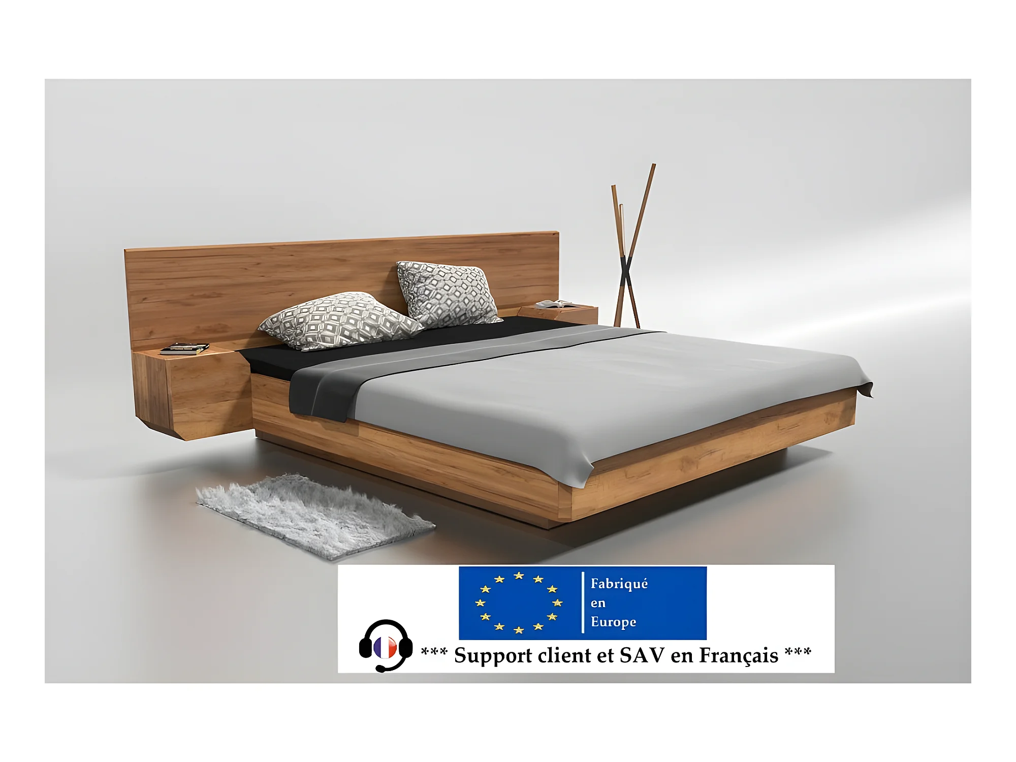 Lit 2 personnes pour adulte 160x200cm avec tête de lit et 2 chevets intégrés robuste modéle NELUMBO Couleur Chêne