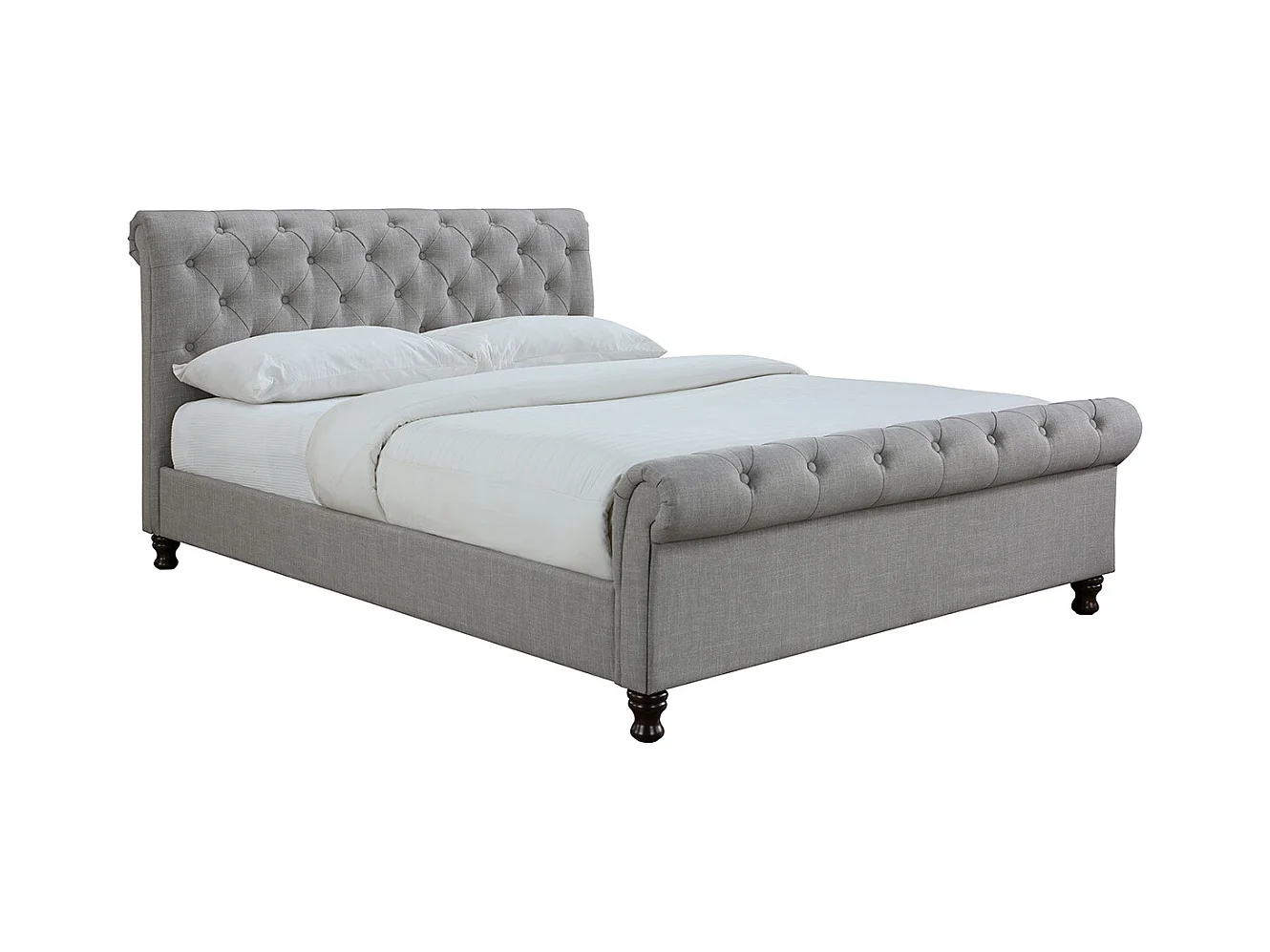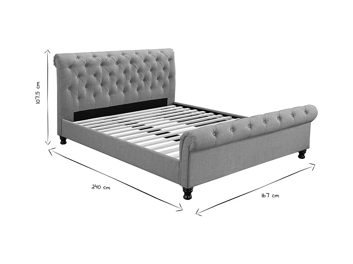 Lit 2 places 160x200 cm en tissu gris capitonné RILEY