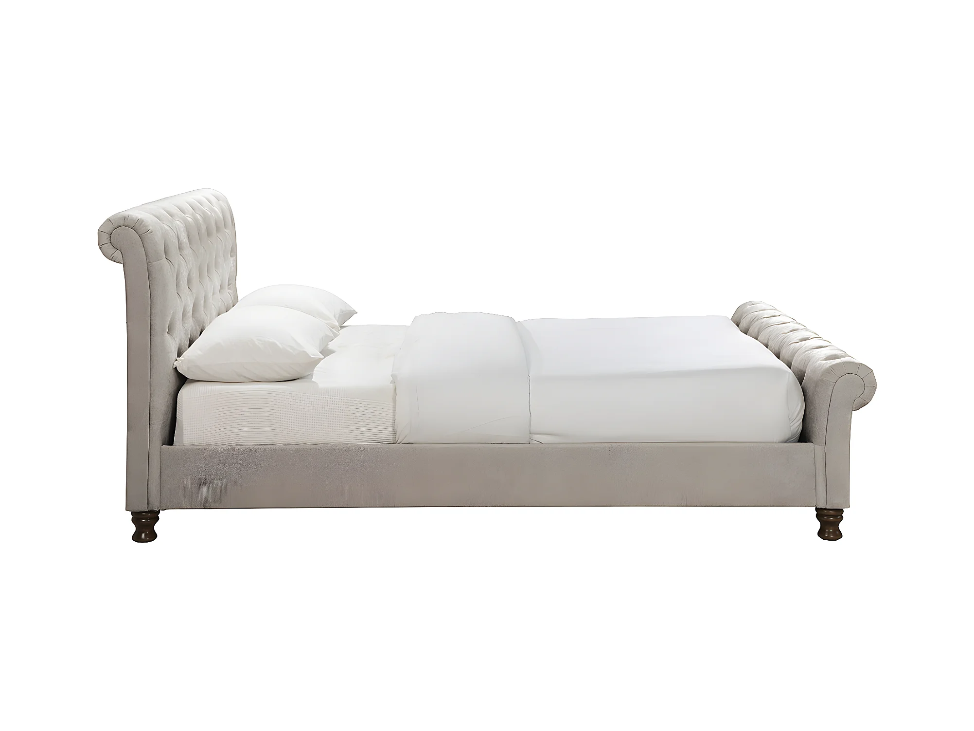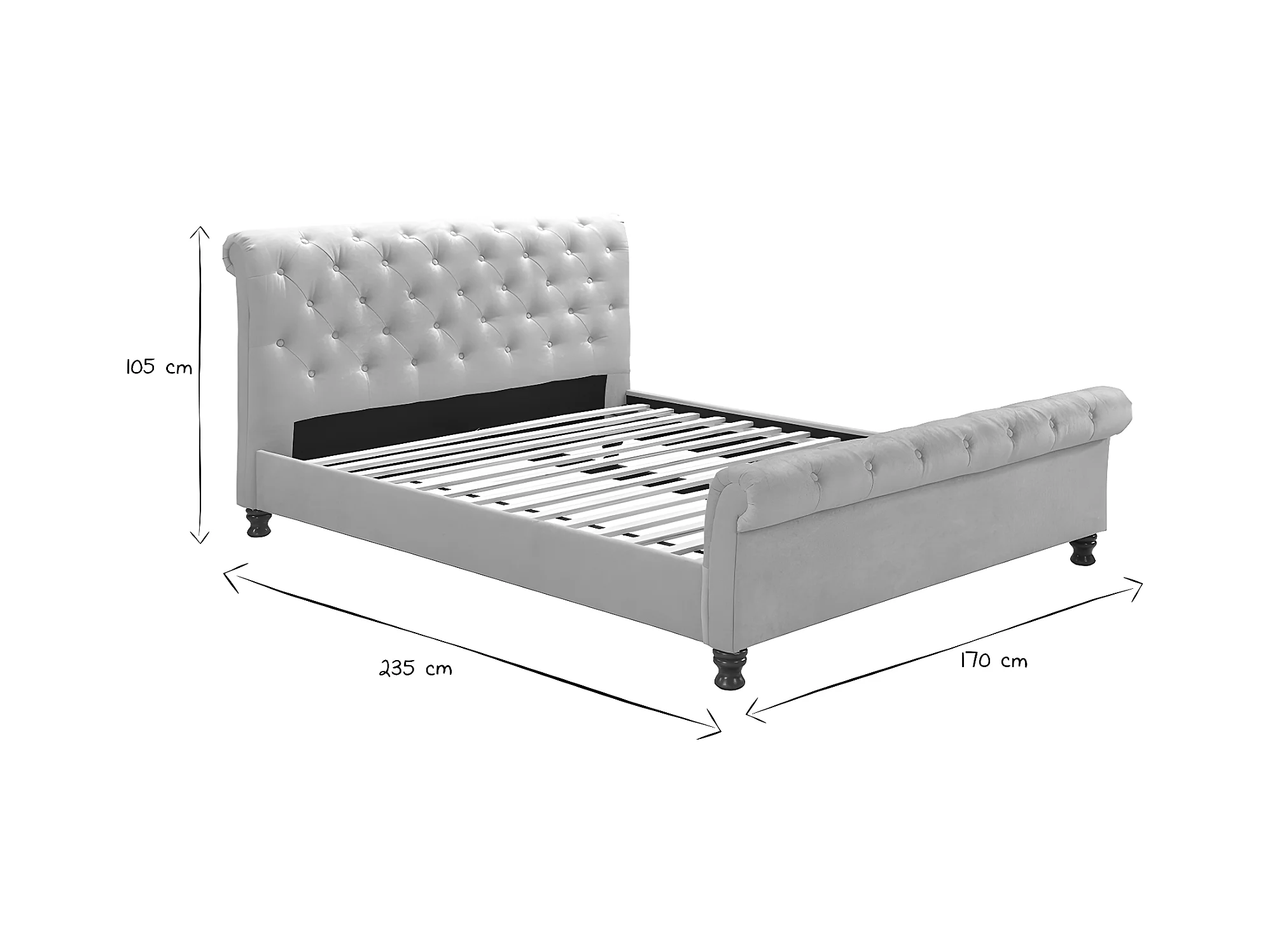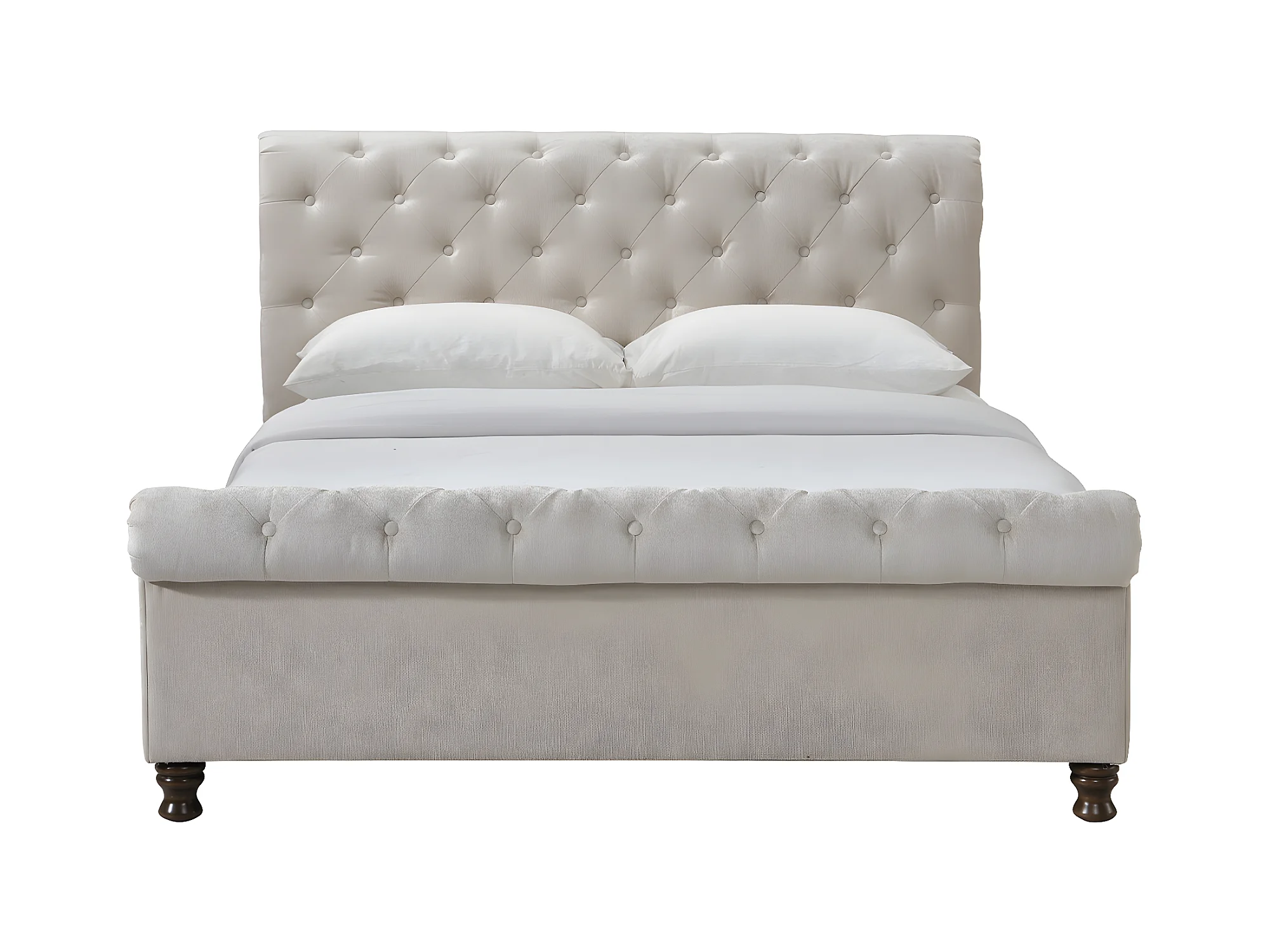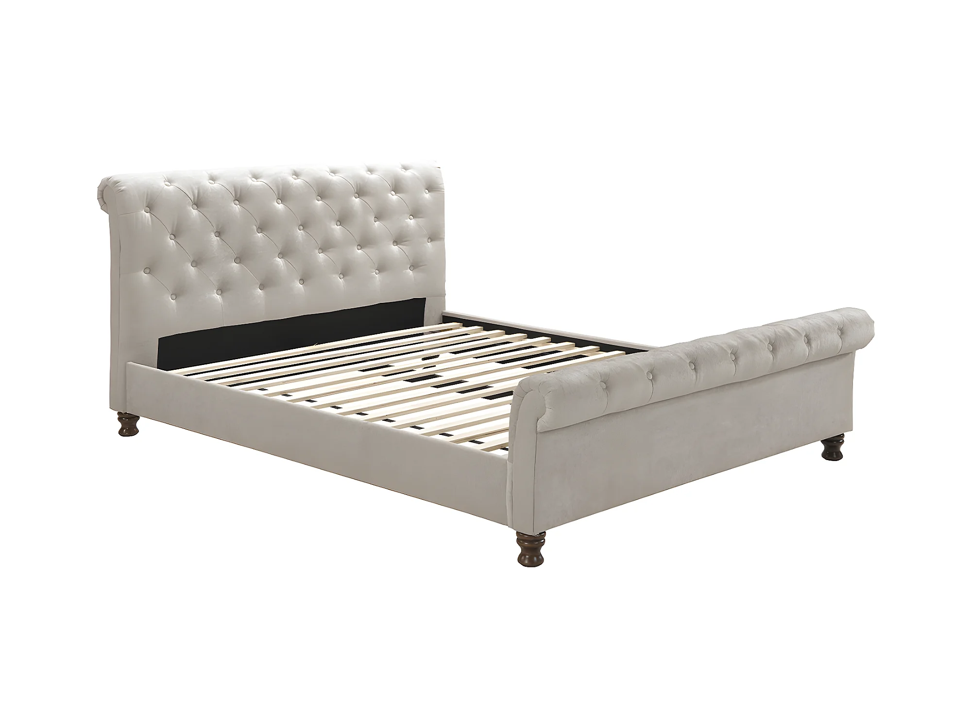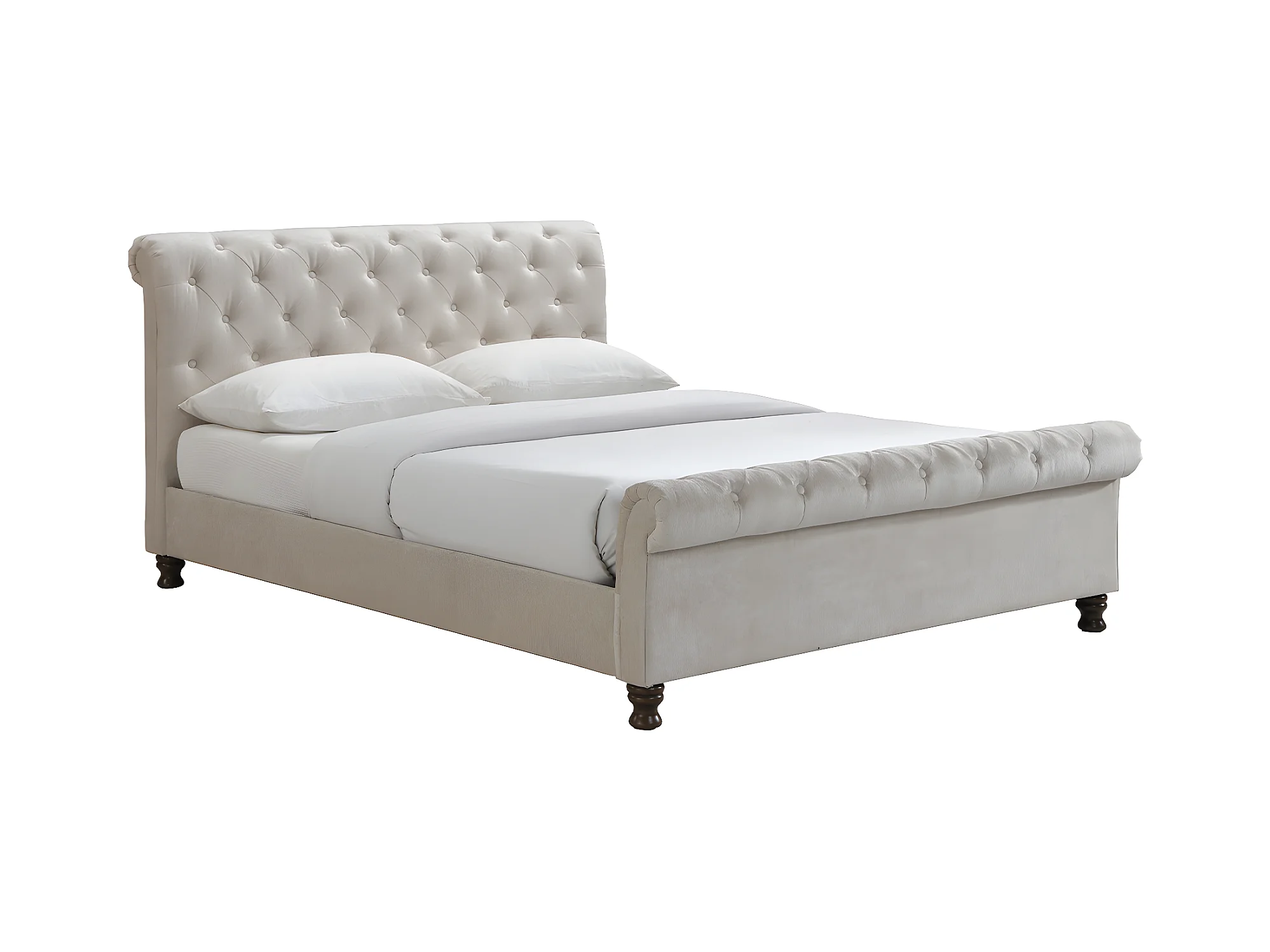 Lit 2 places 160x200 cm en tissu velours beige capitonné RILEY