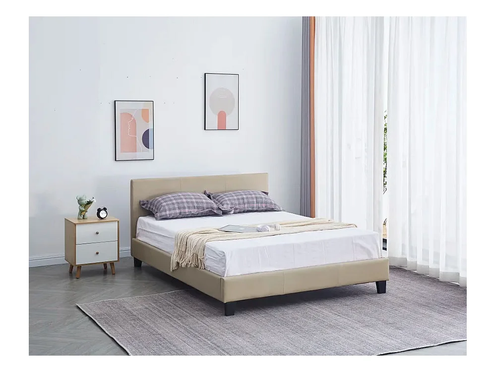 Lit 2 places MELBOURNE simili cuir TAUPE 160x200 cm avec sommier intégré