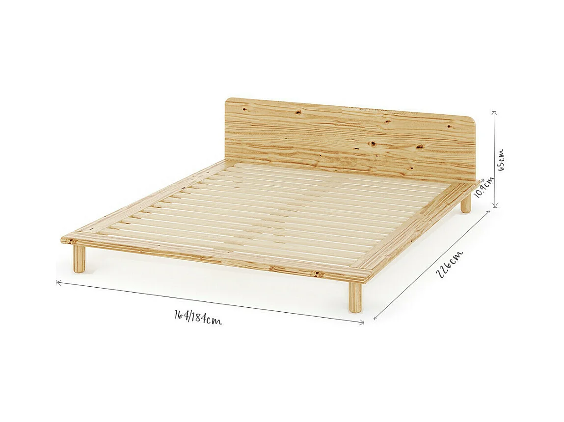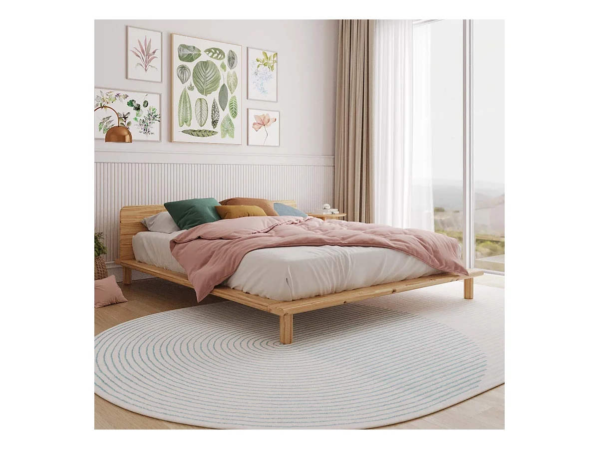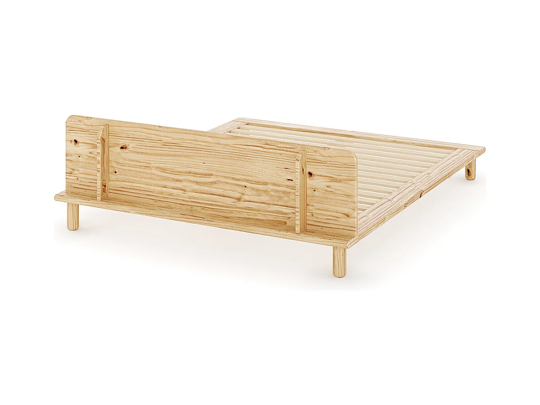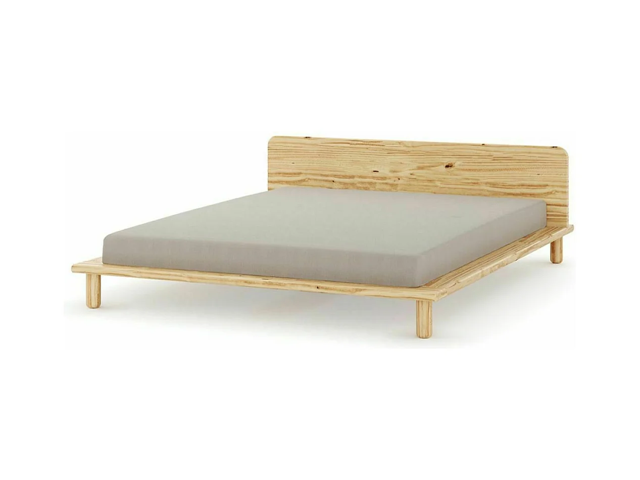 Lit 2 places avec tête de lit 160x200 cm bois massif bois naturel PAOLO