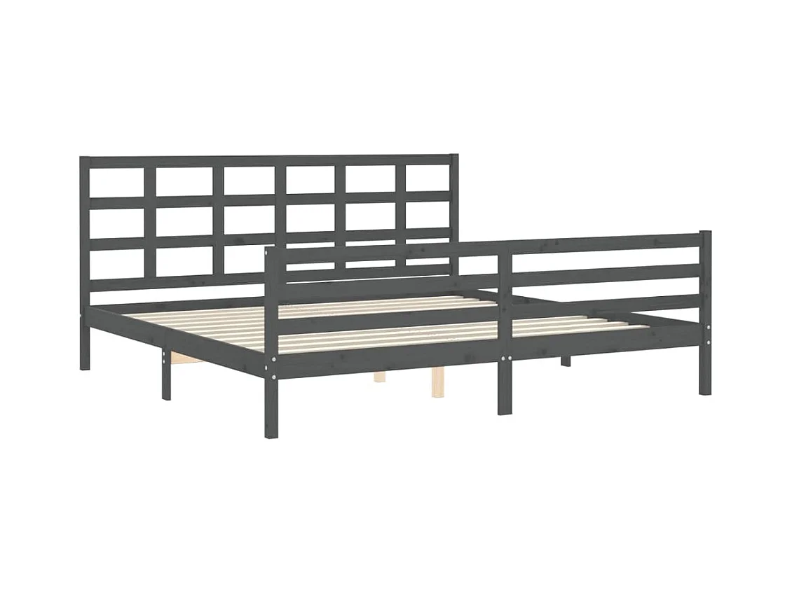 Lit-200x200 cm avec tête de lit gris bois massif EGGB67733