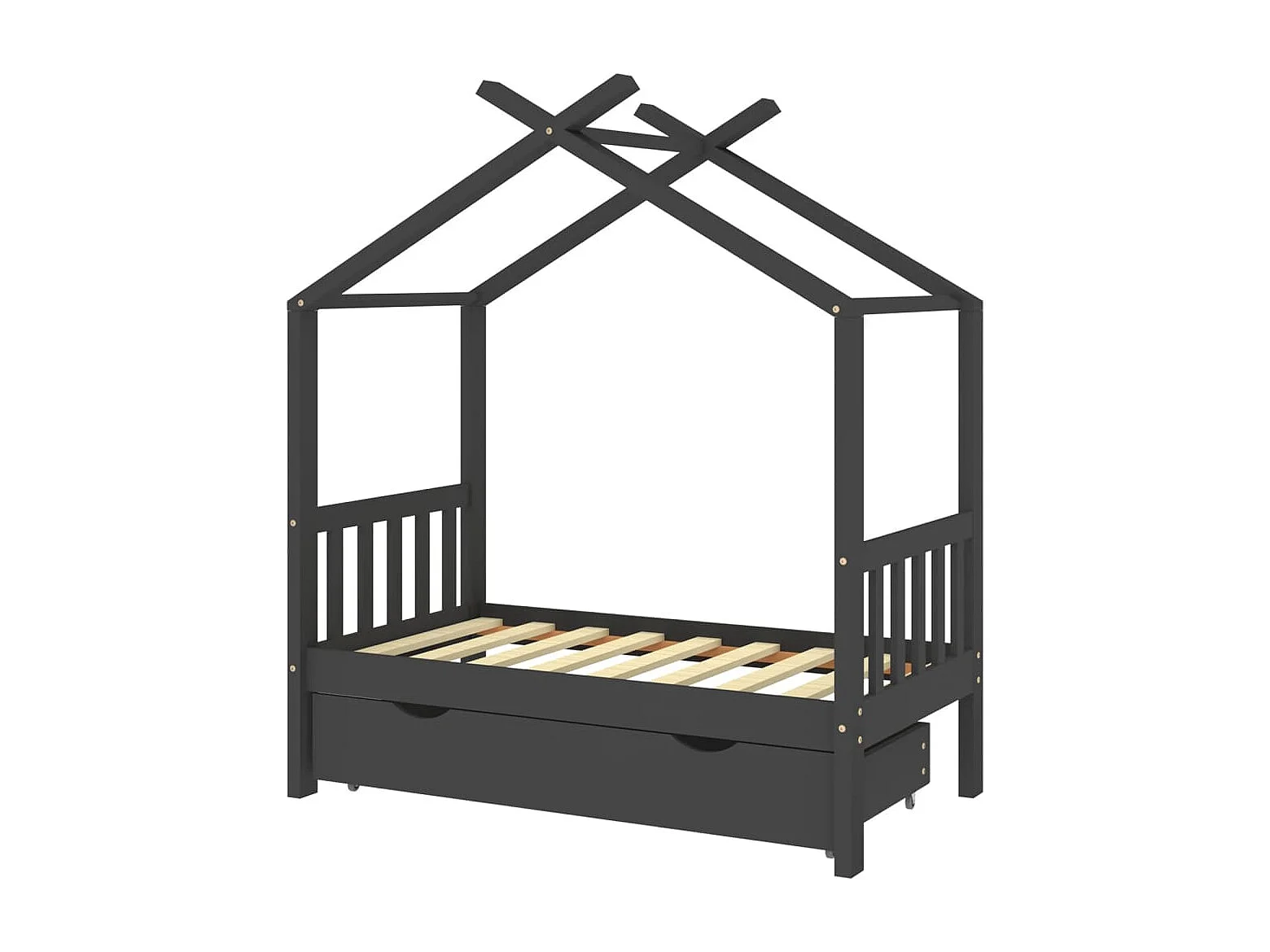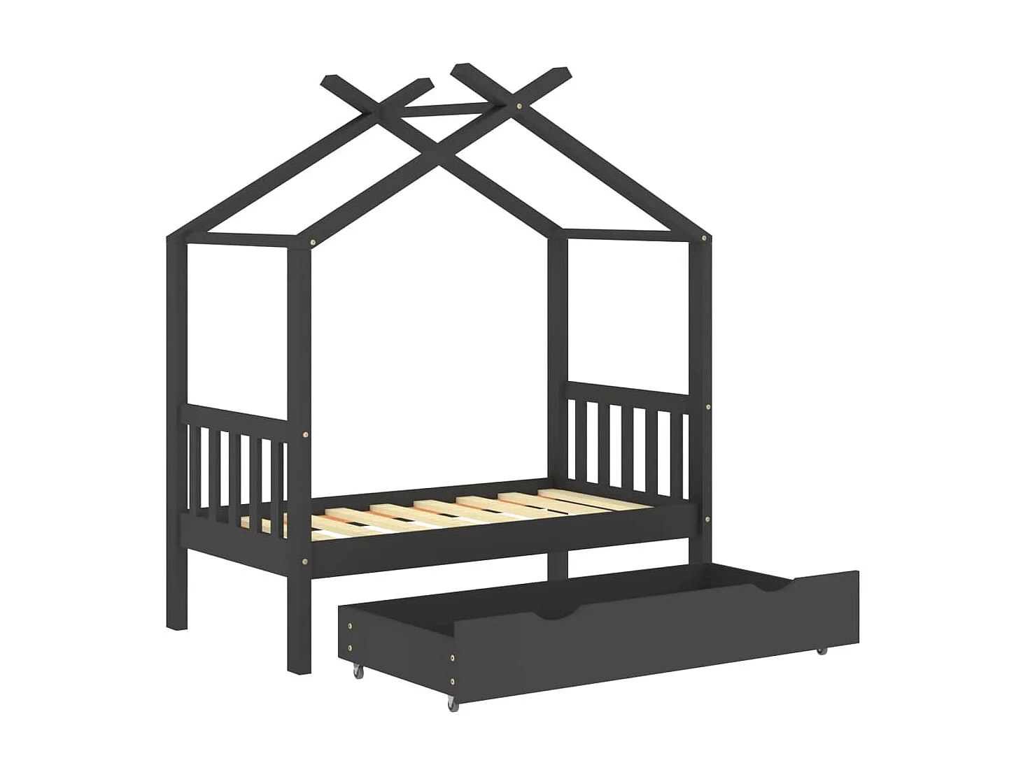 Lit-70x140 cm d'enfant avec un tiroir Gris foncéé Pin EGGB16253
