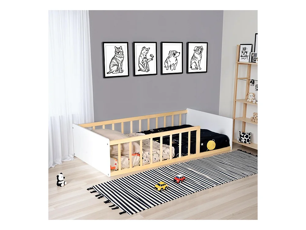 Lit cabane LUSIA 80x160 cm, lit simple 1 place pour bébé ou enfant de type Montessori, en pin massif à la finition naturelle