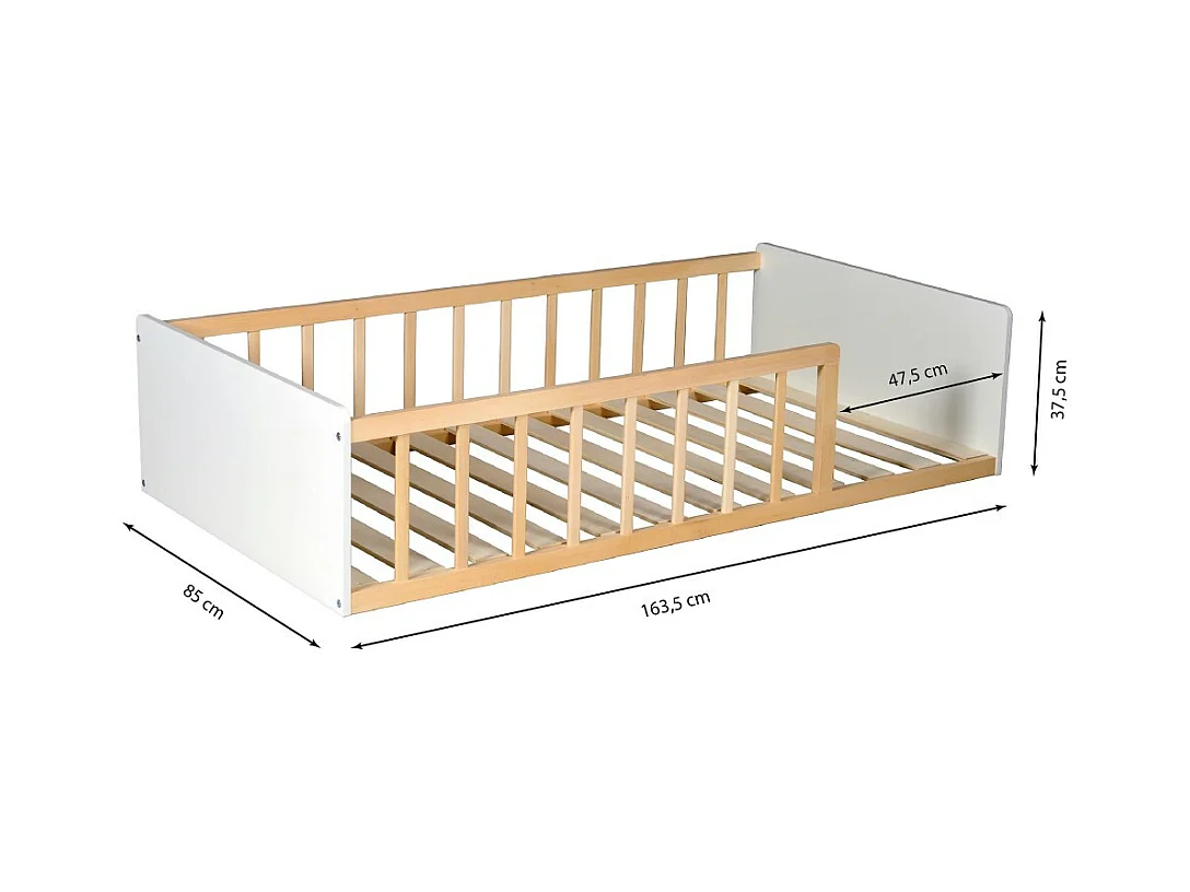 LIT 80x160 PILOU avec sommier / Blanc et Naturel
