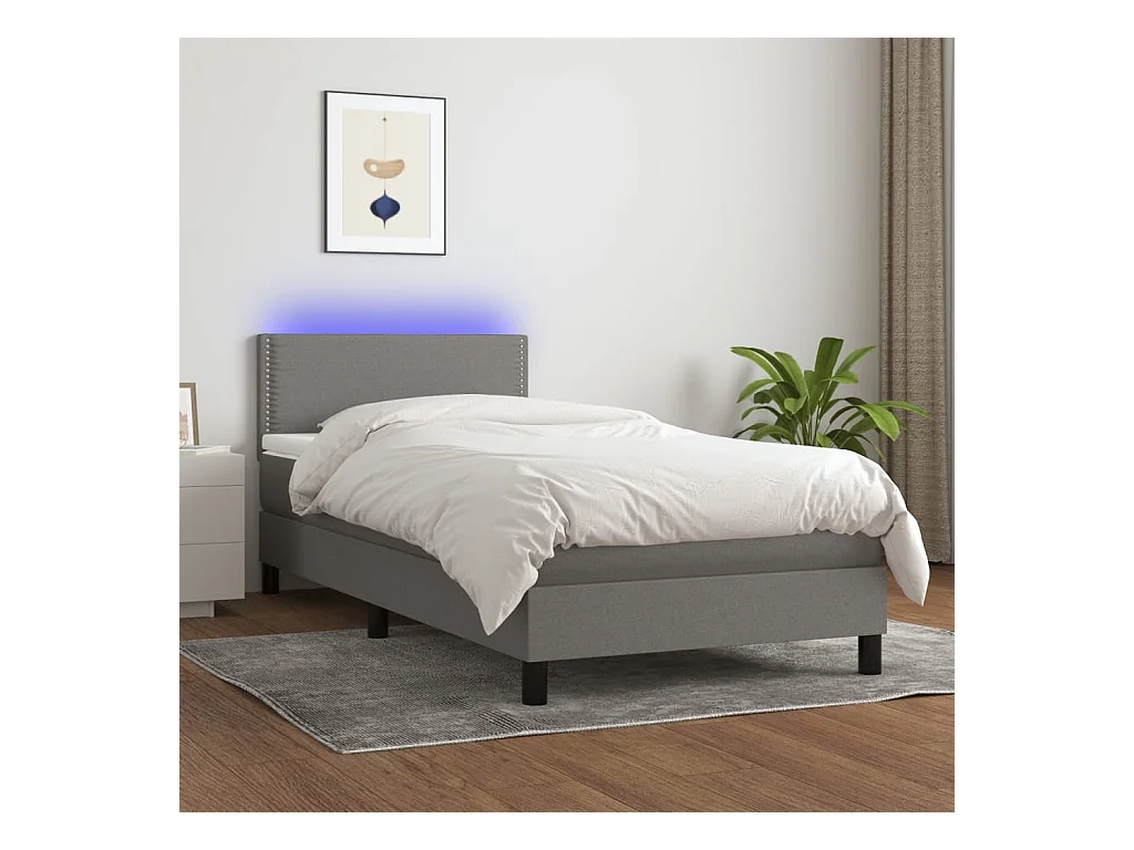 Ensemble complet boxspring - 80x200 cm + sommier à lattes de lit + matelas + LED Gris foncé SRGW74311
