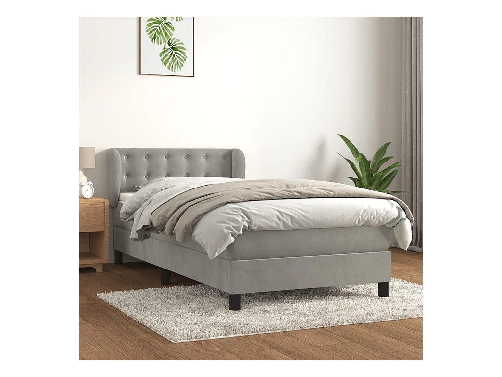 Ensemble complet boxspring - 80x200 cm + sommier tapissier + matelas Gris clair Velours SRGW62001