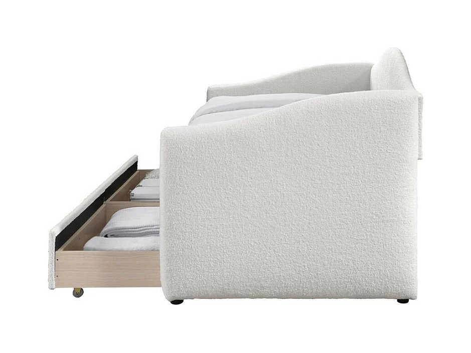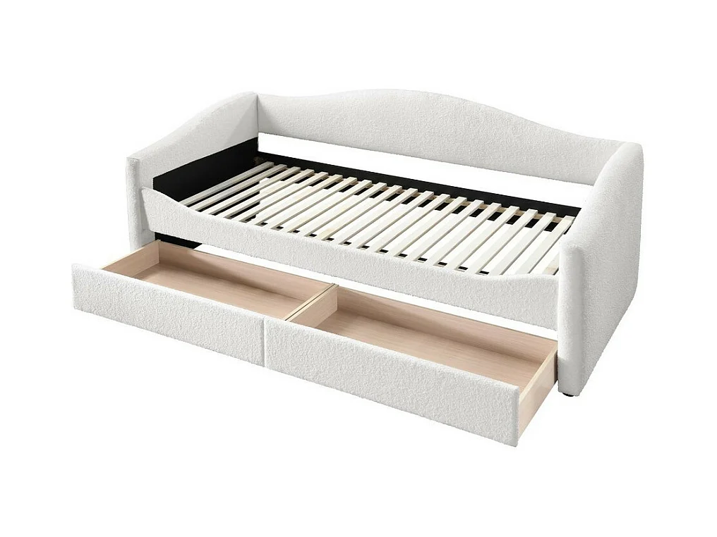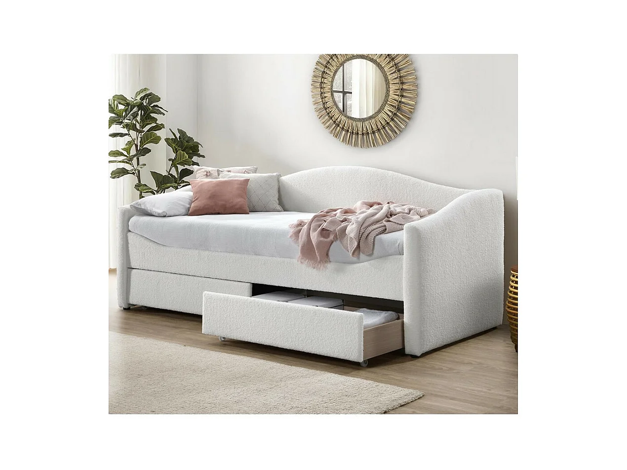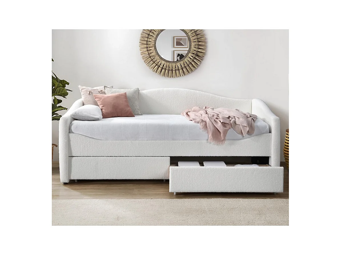 Lit 90 x 200 cm en tissu bouclé beige avec tiroirs Sabe