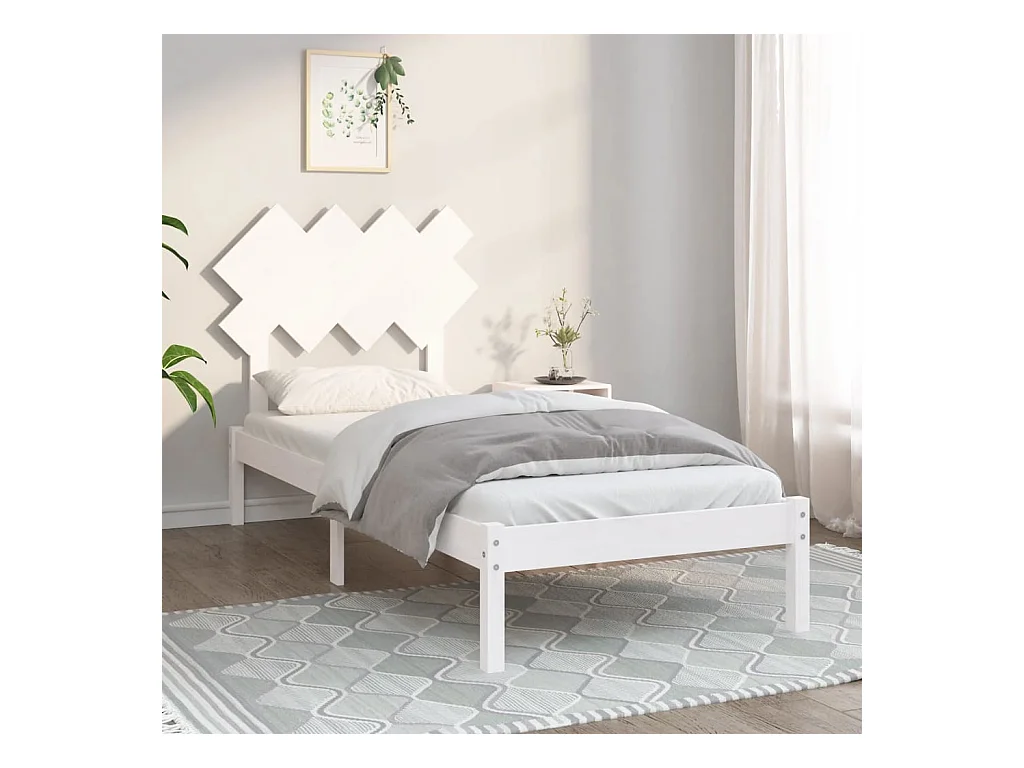 Lit-90x190 cm Blanc Simple Bois massif EGGB19238