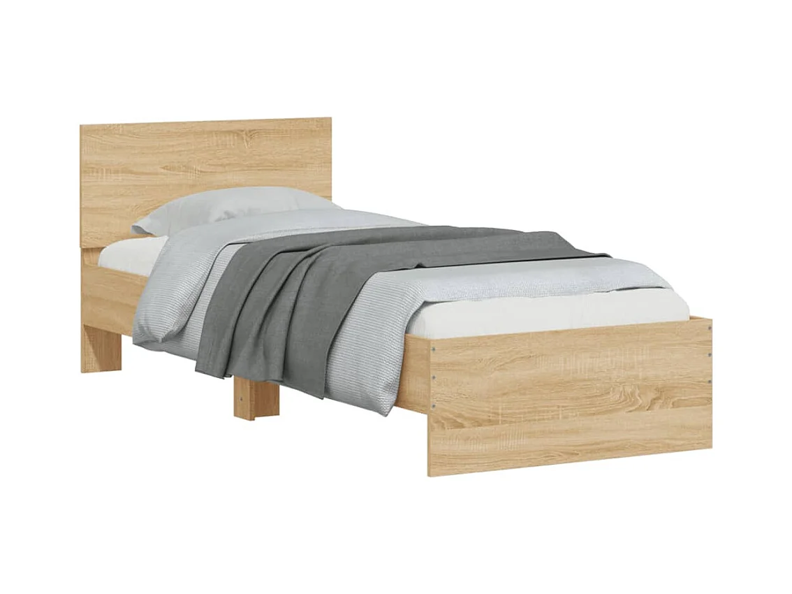 Lit adulte en métal avec tête de lit chêne sonoma 90x190 cm FR516333