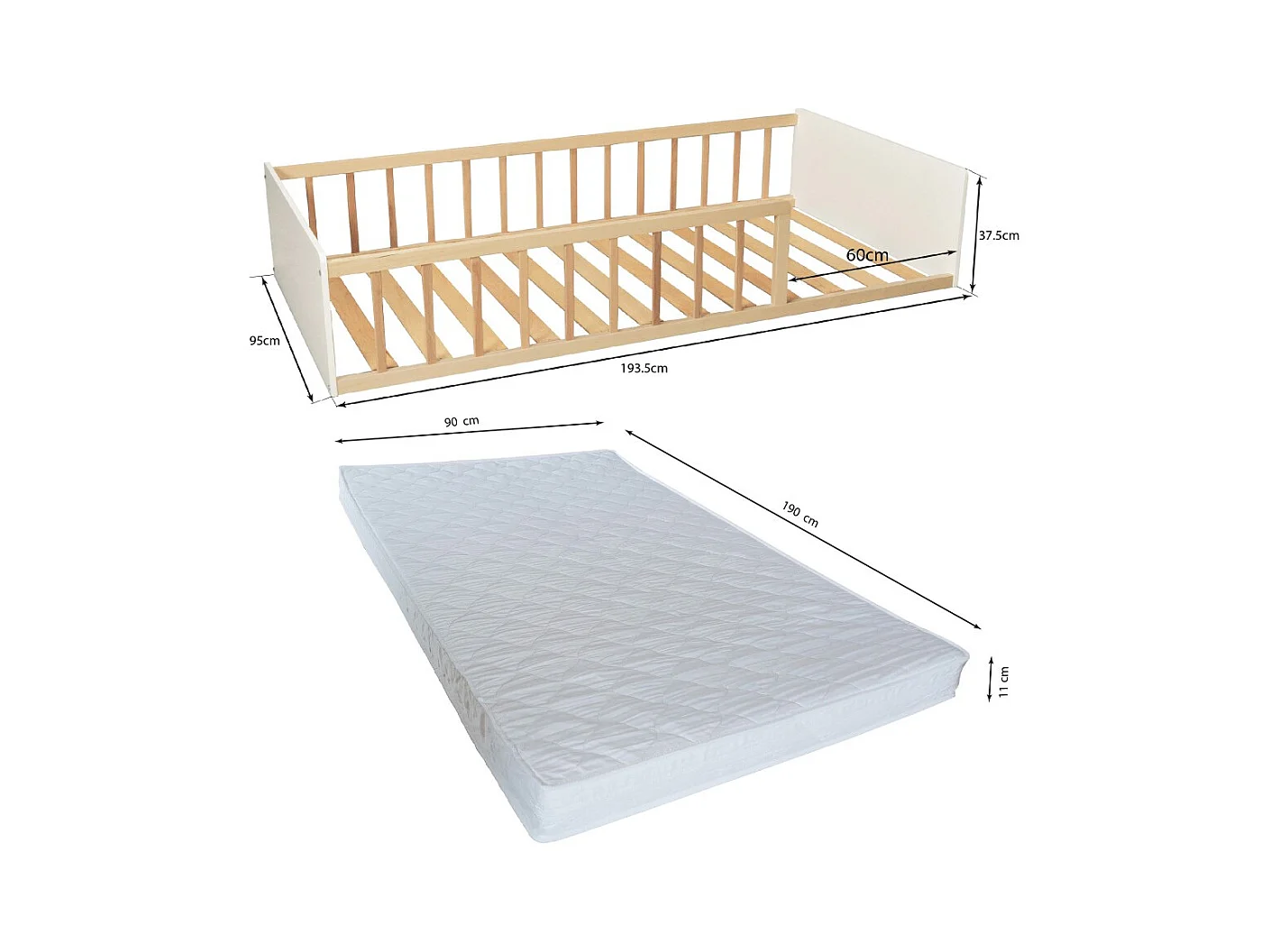 LIT 90x190 PILOU avec sommier et matelas / Blanc et Naturel
