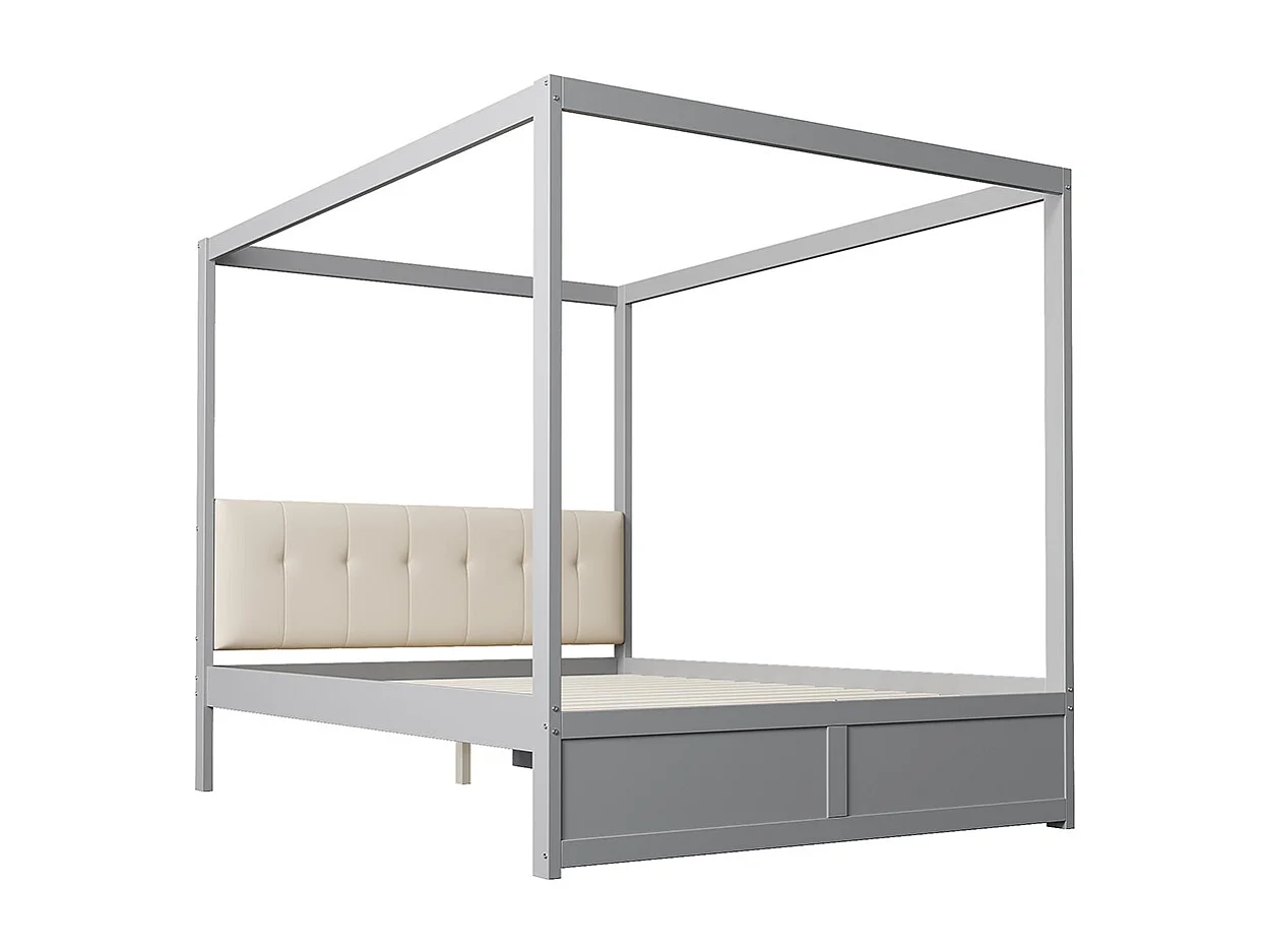 Lit à baldaquin Lit avec tiroir lit à baldaquin 140x200 avec grands tiroirs et dossier moelleux bois Lit Gris