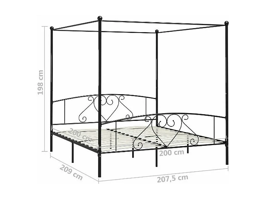 Lit à baldaquin métal noir Tommy 200x200