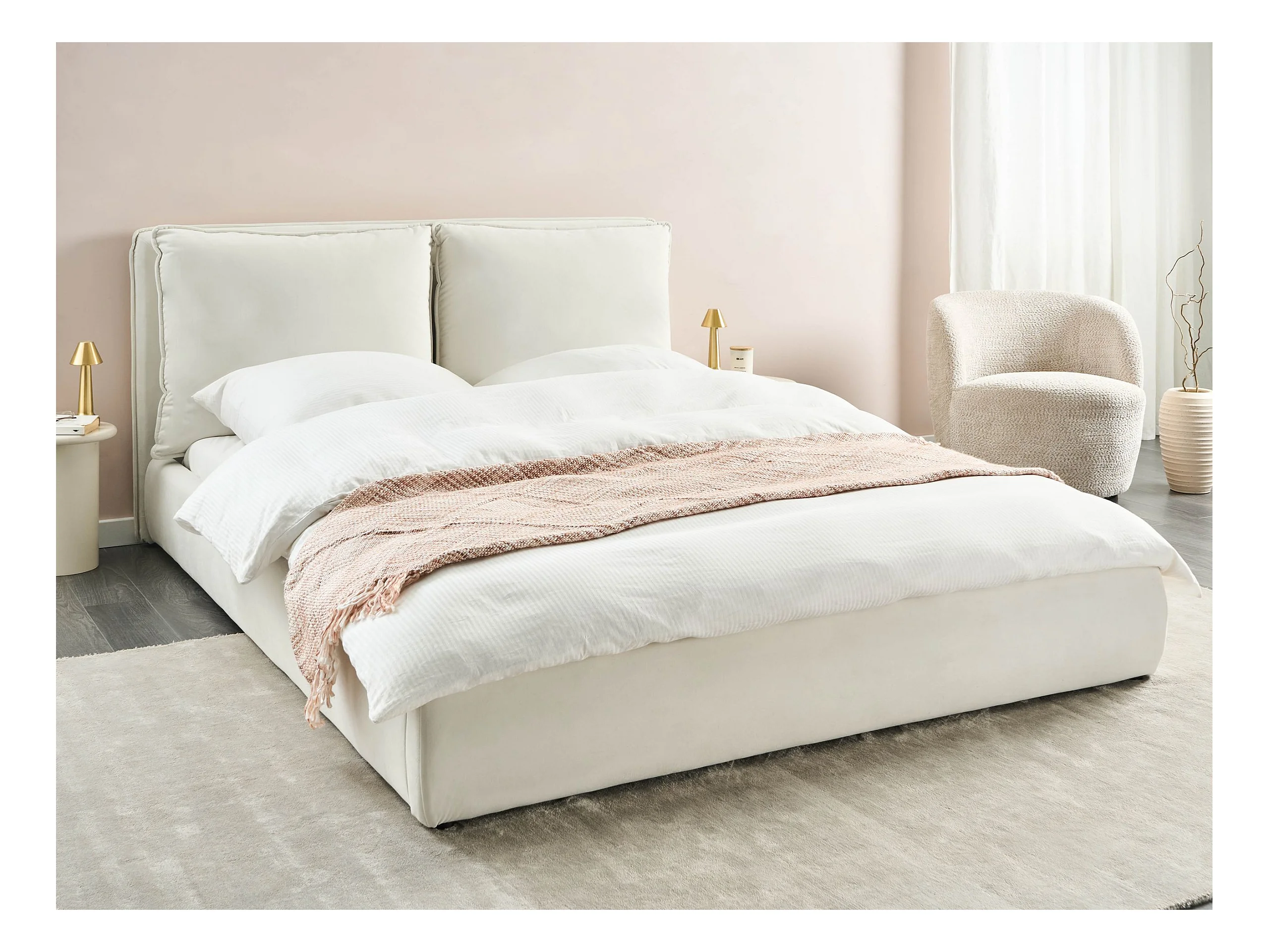 Lit à eau Velours BAJONNA 160 x 200 cm Blanc cassé