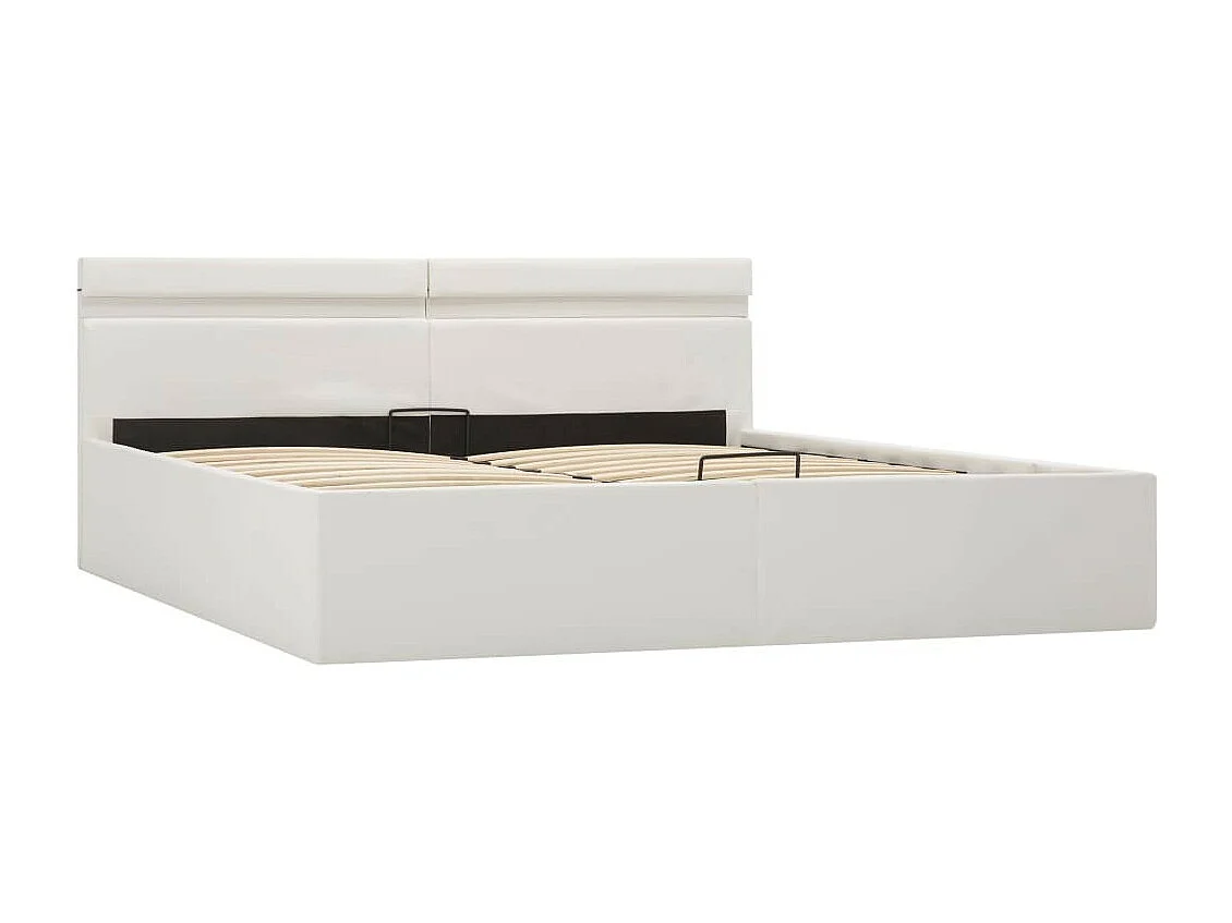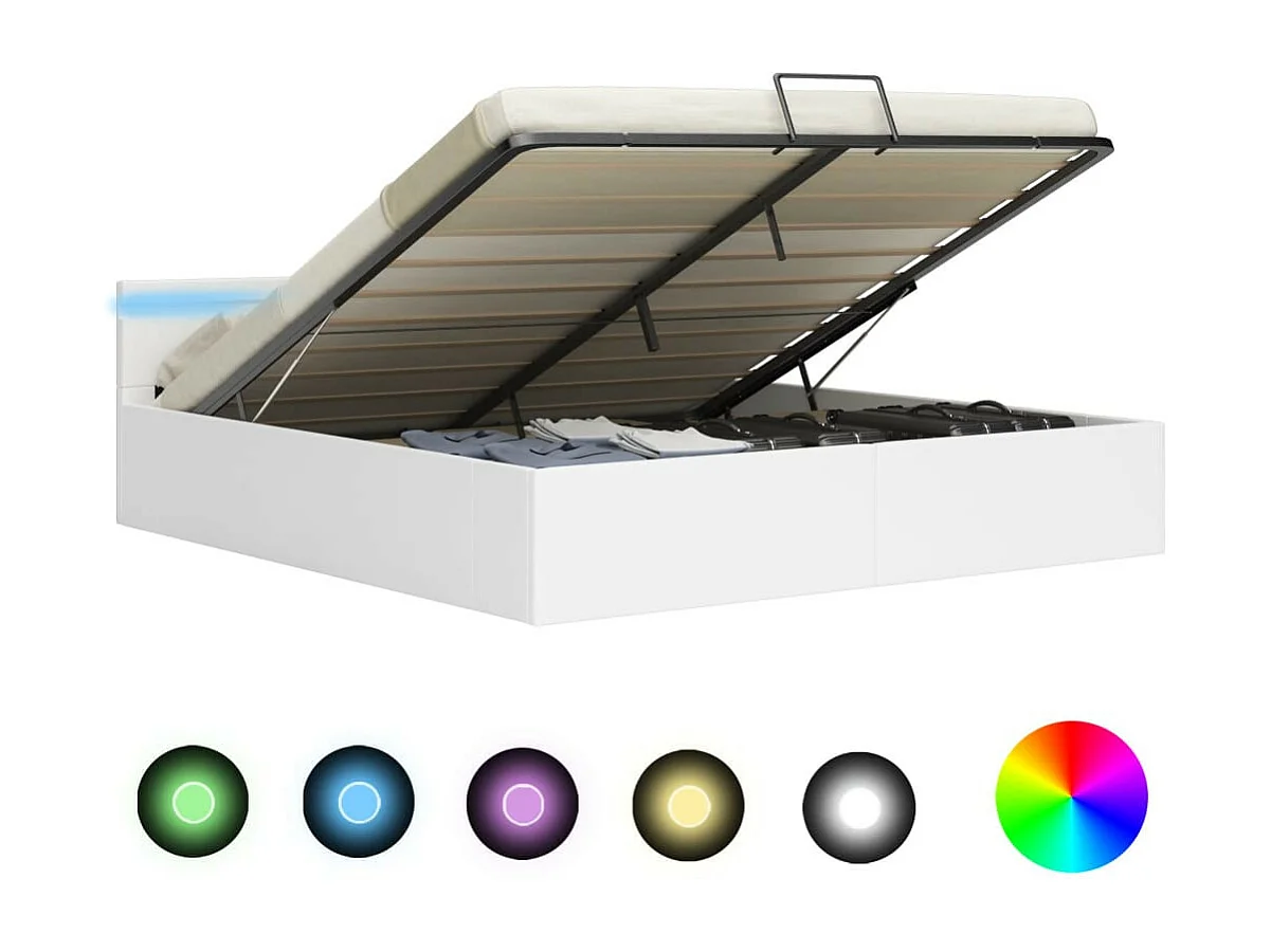 Lit à rangement avec LED Blanc Similicuir 180x200