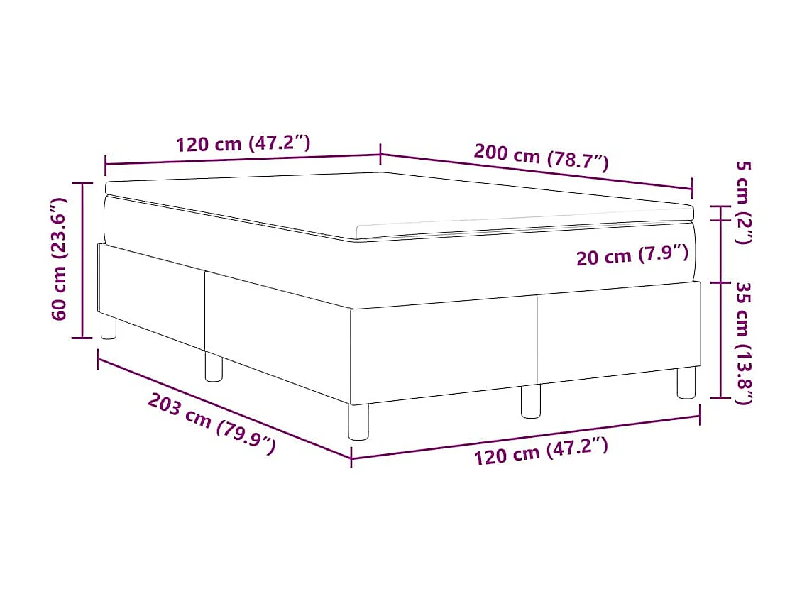 Lit à ressorts Bleu et Blanc 203 x 120 x 60 cm