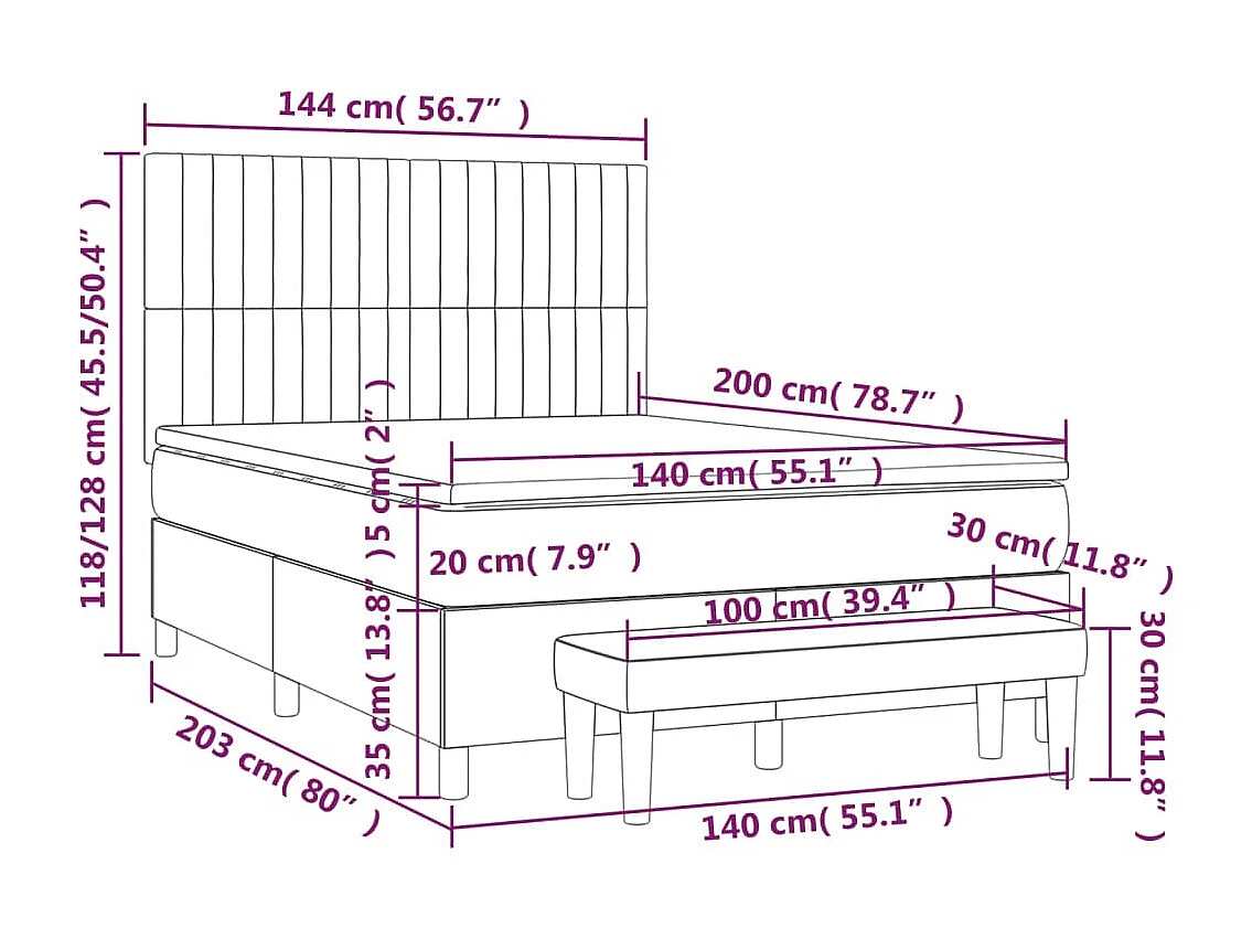 Lit à sommier tapissier avec matelas Marron foncé 140x200 cm