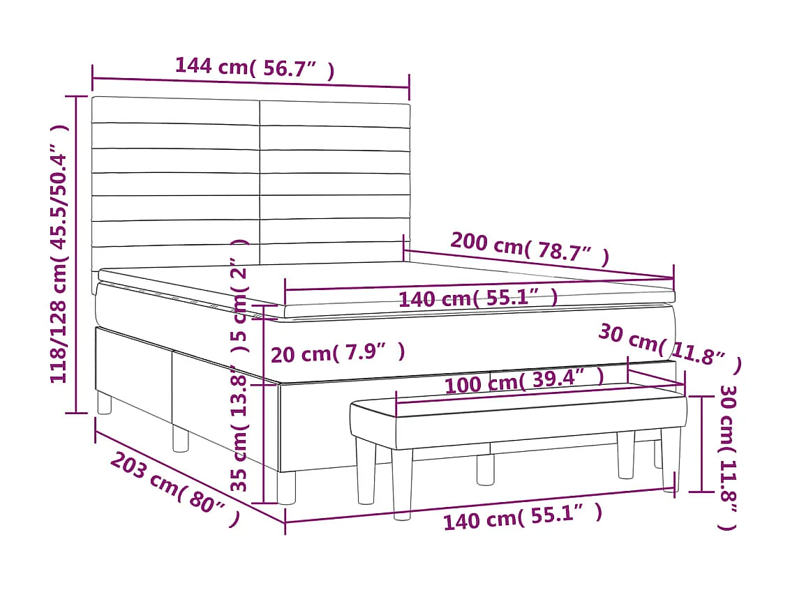 Lit à sommier tapissier avec matelas Marron foncé 140x200 cm