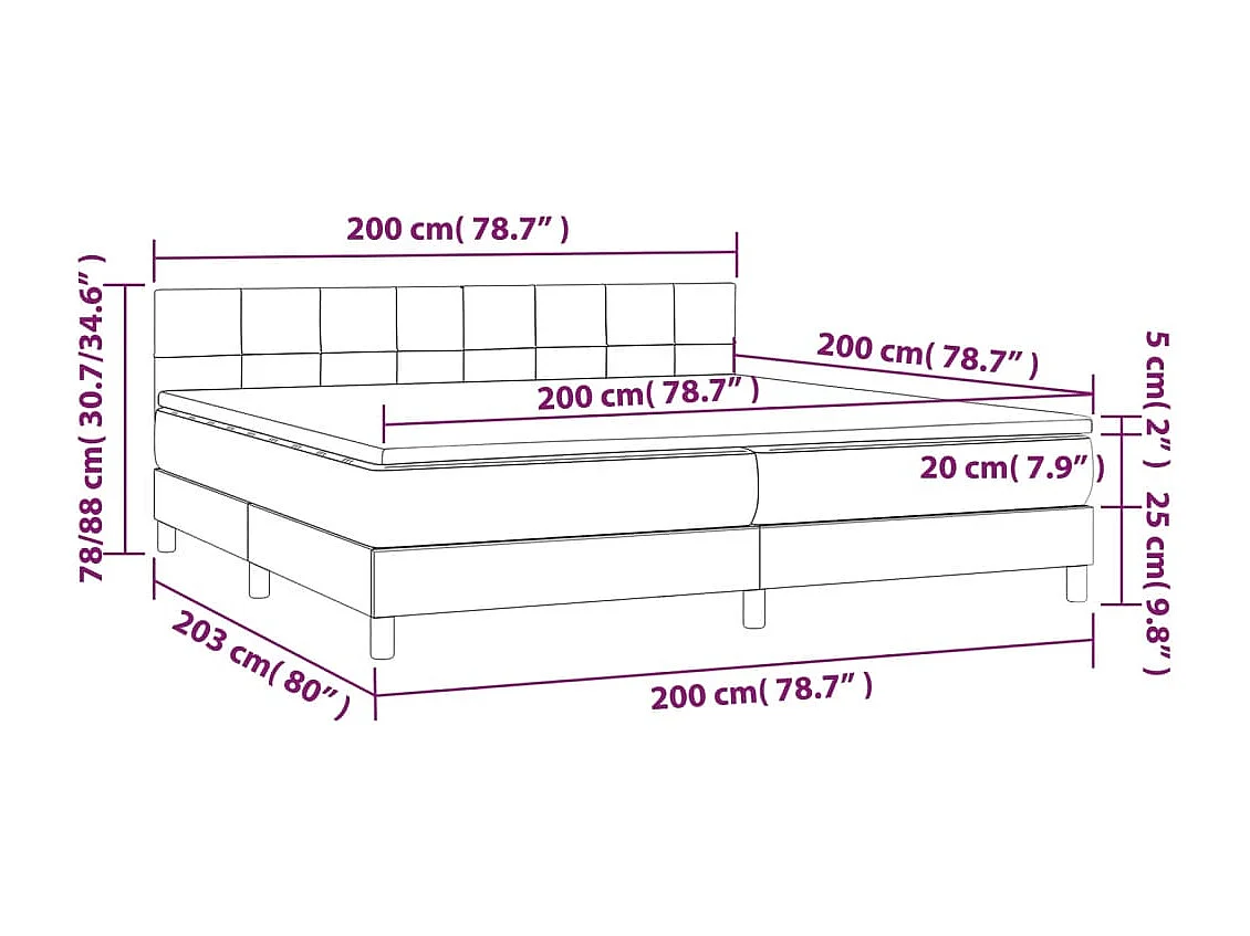Lit à sommier tapissier avec matelas Marron foncé 200x200 3