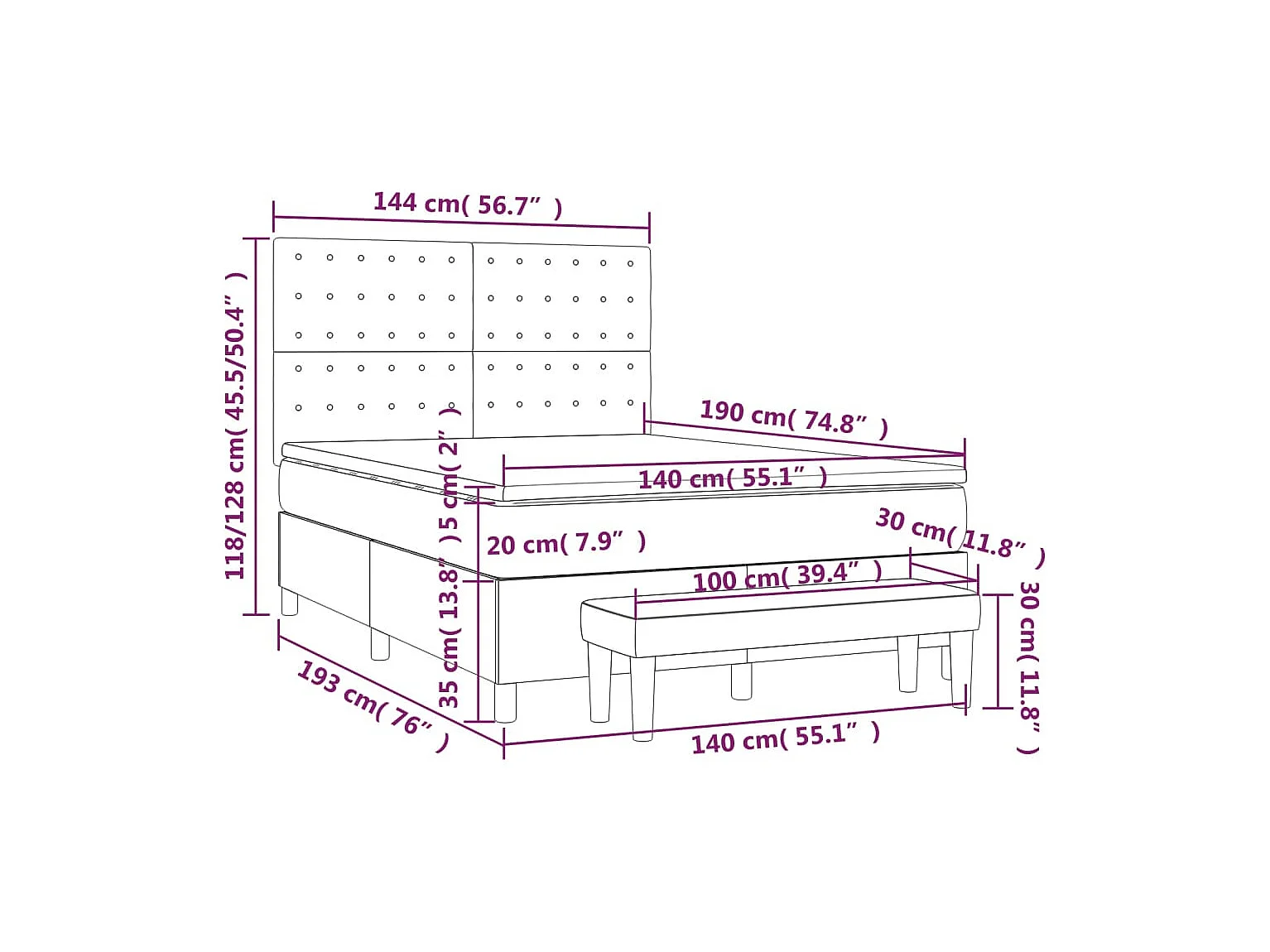 Lit à sommier tapissier avec matelas Noir 140x190 cm Tissu
