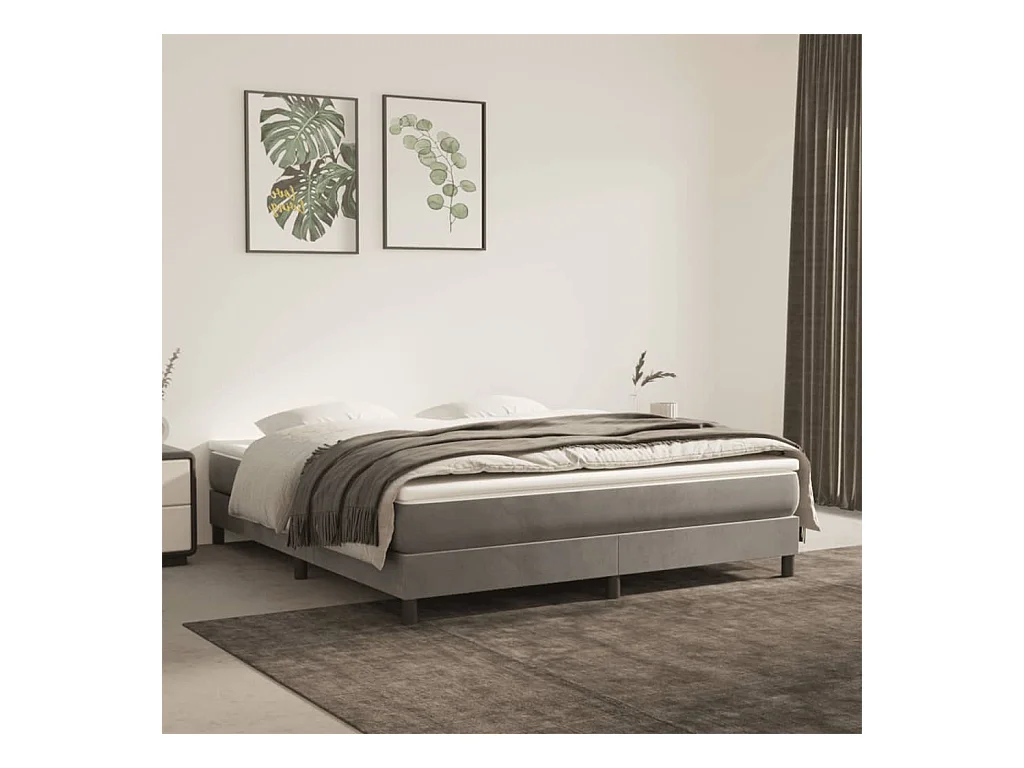 Lit à sommier tapissier et matelas Gris clair 180x200 Velours
