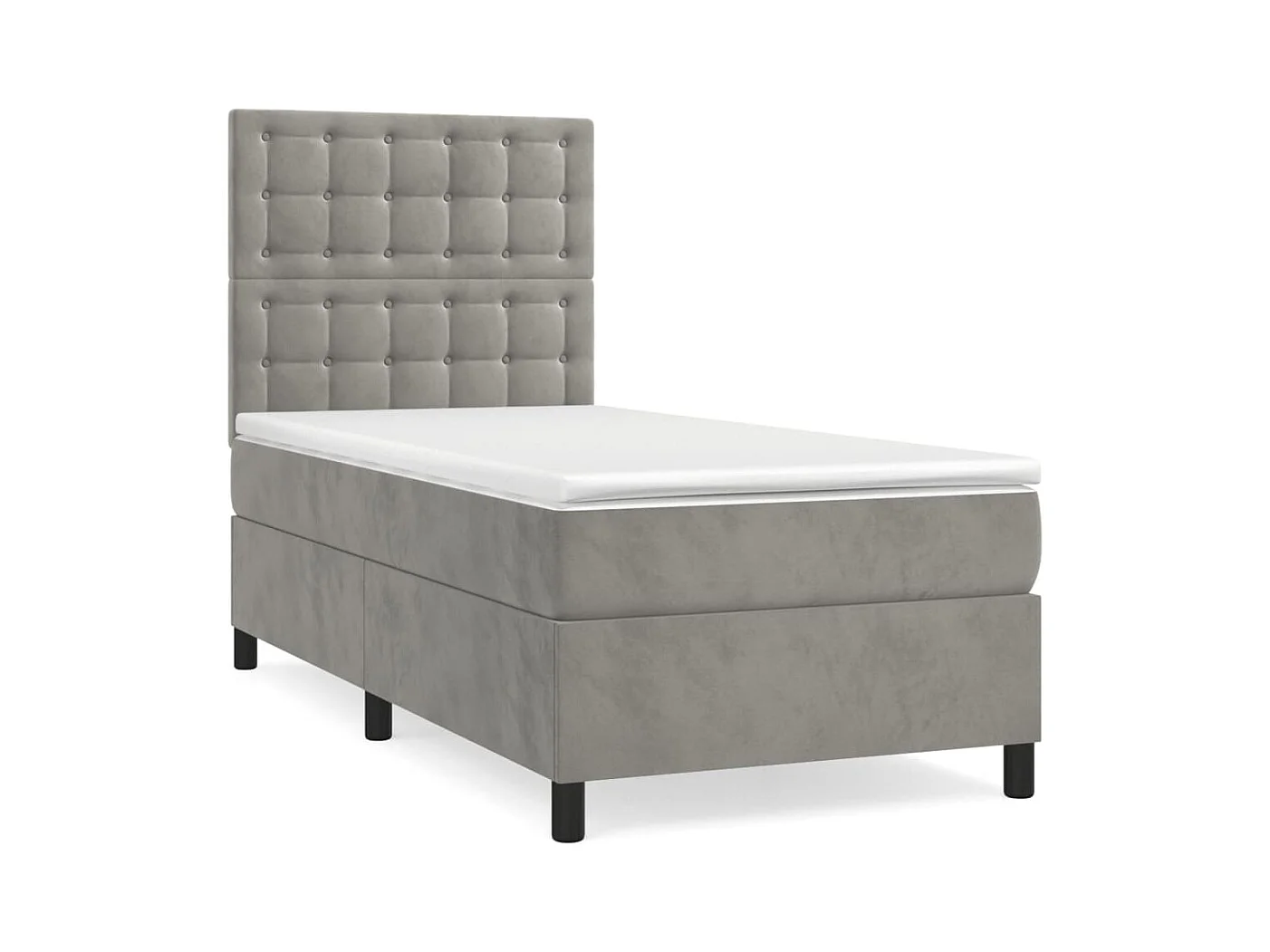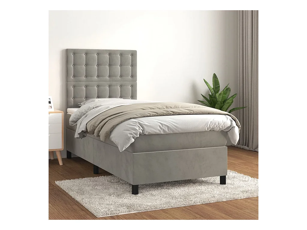 Lit à sommier tapissier et matelas Gris clair 90x200 Velours