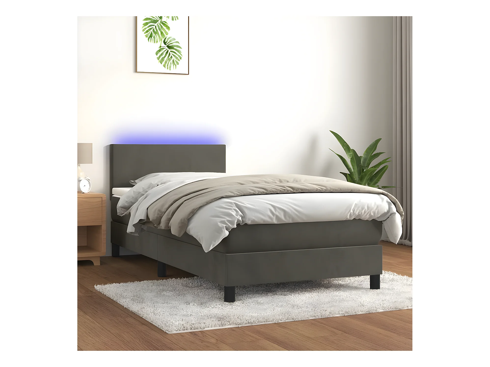 Lit à sommier tapissier matelas et LED Gris foncé 100x200 Velours