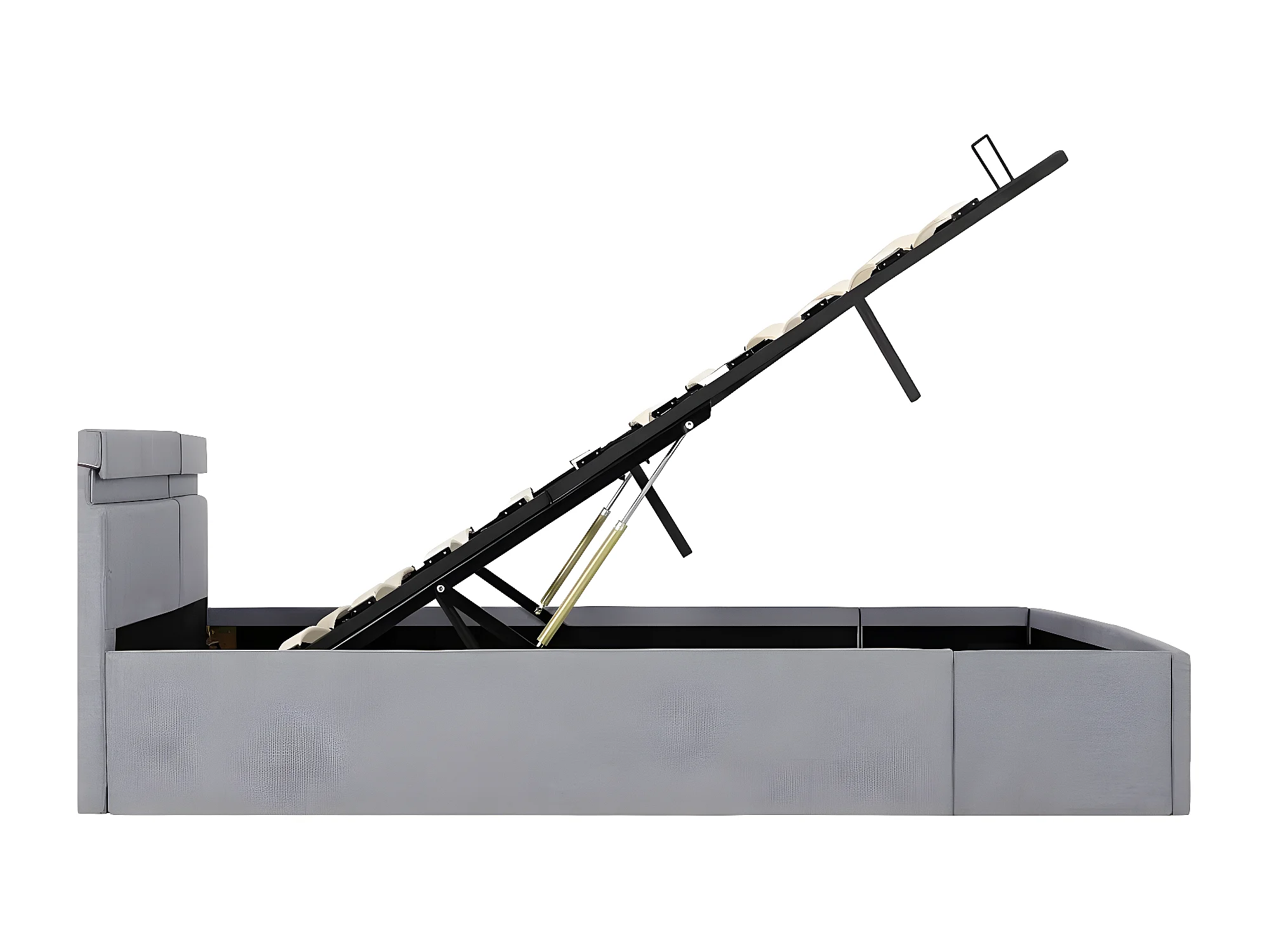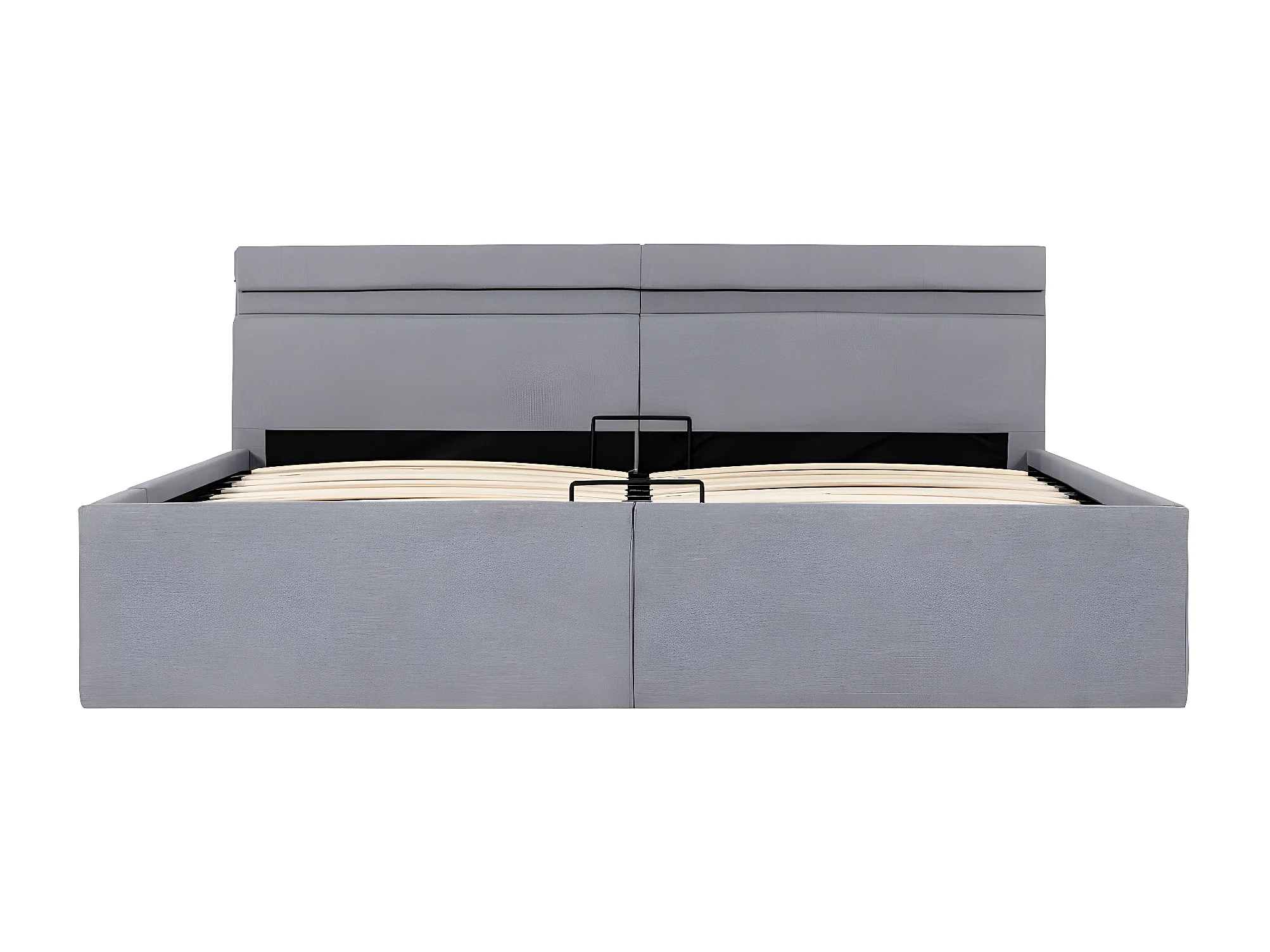 Lit à stockage avec LED Gris clair Tissu 160x200