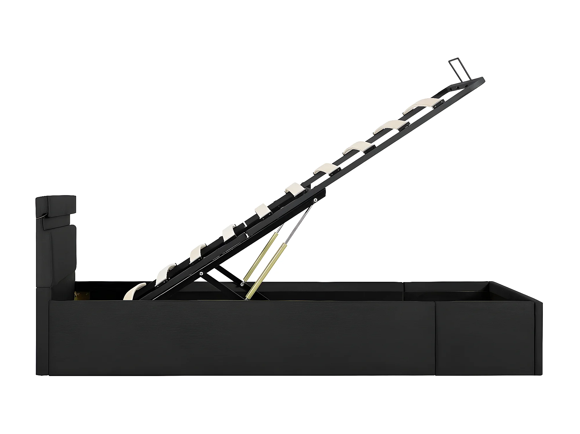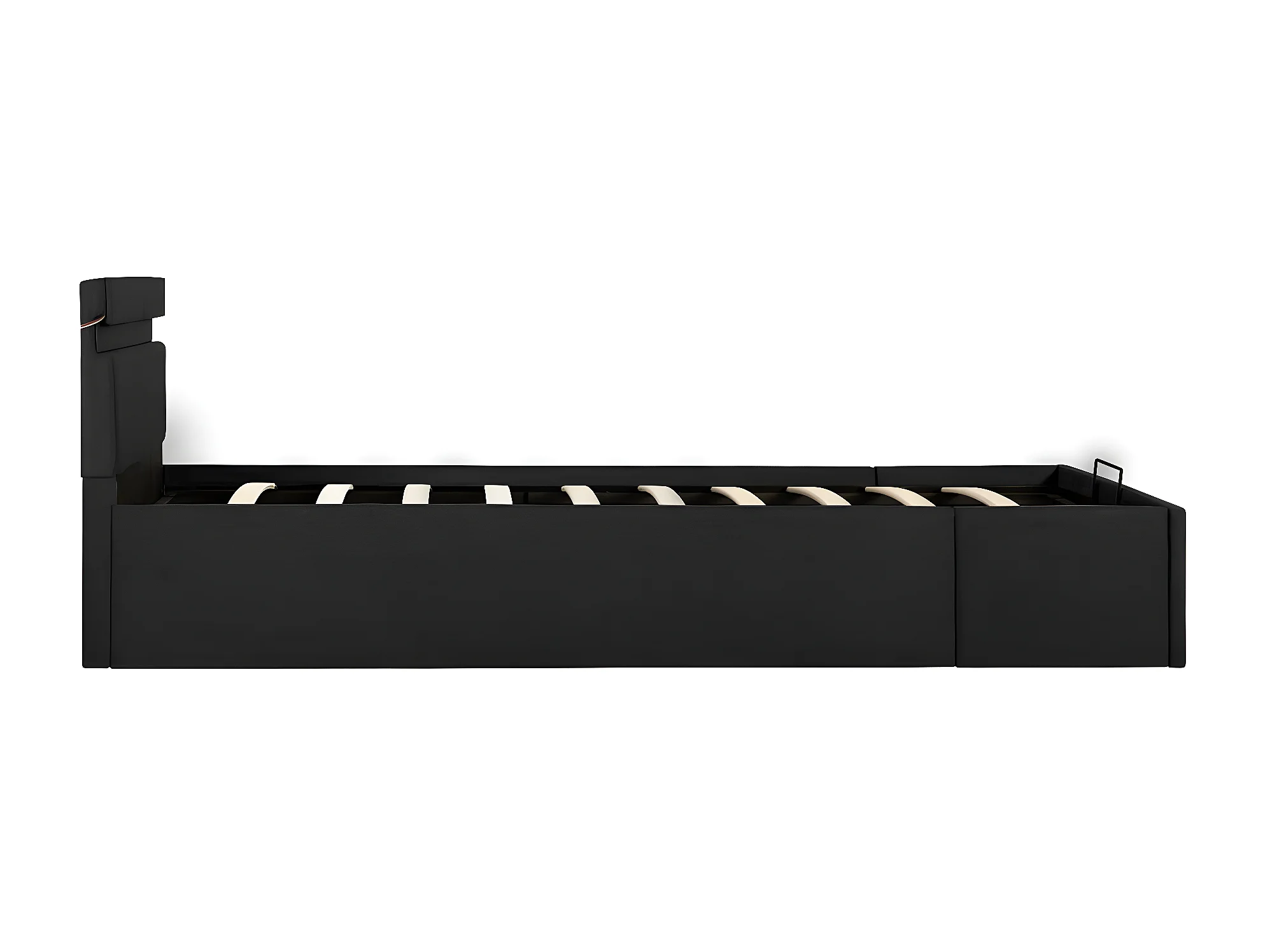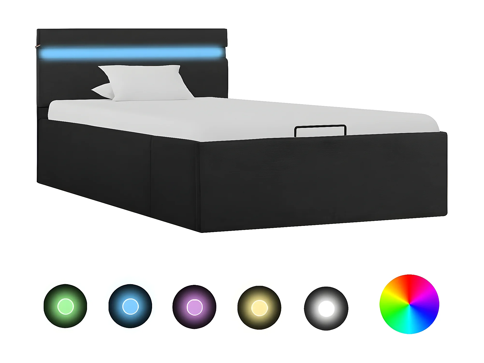 Lit à stockage avec LED Gris foncé Tissu 100x200
