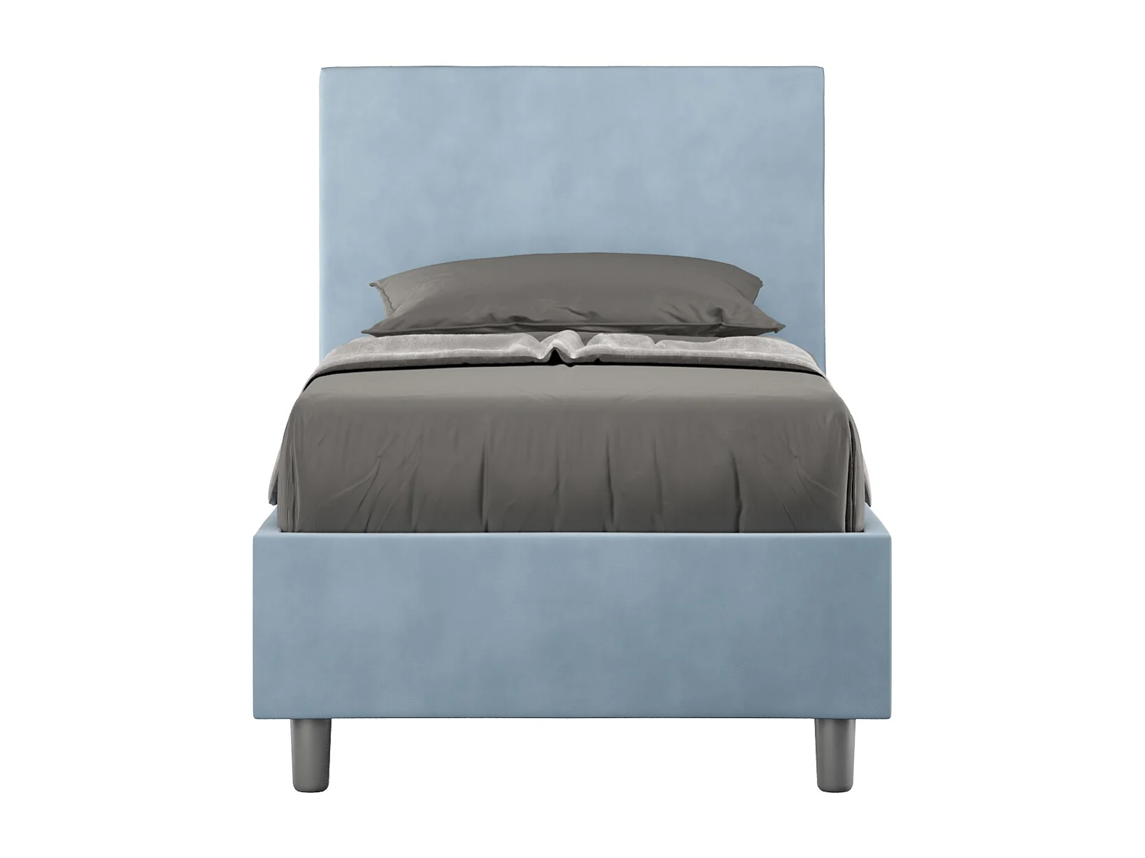 Lit Adèle en microfibre bleu clair avec sommier rembourré 90x190
