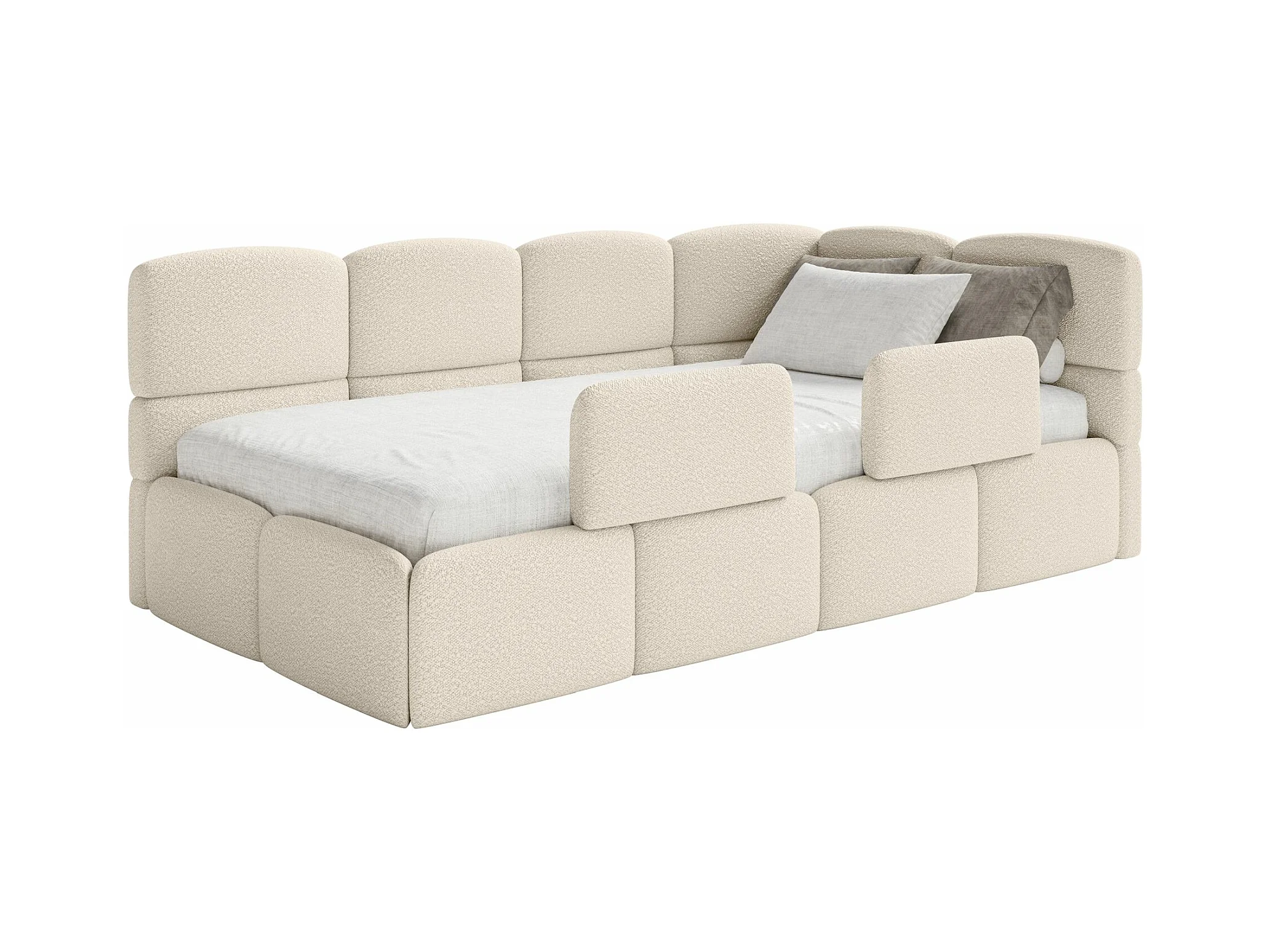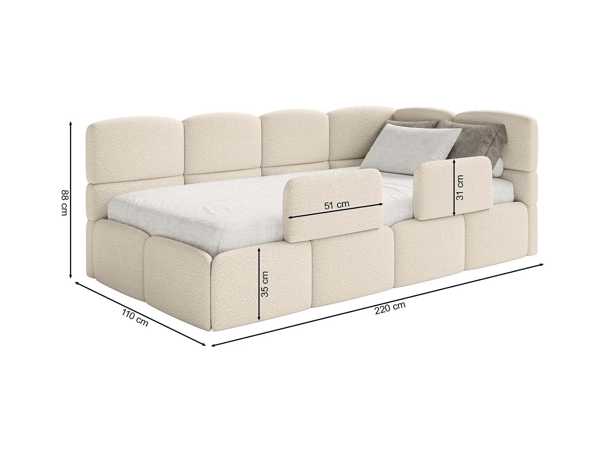 Lit ado avec coffre et barrières - beige clair- côté droit - CLOUDY