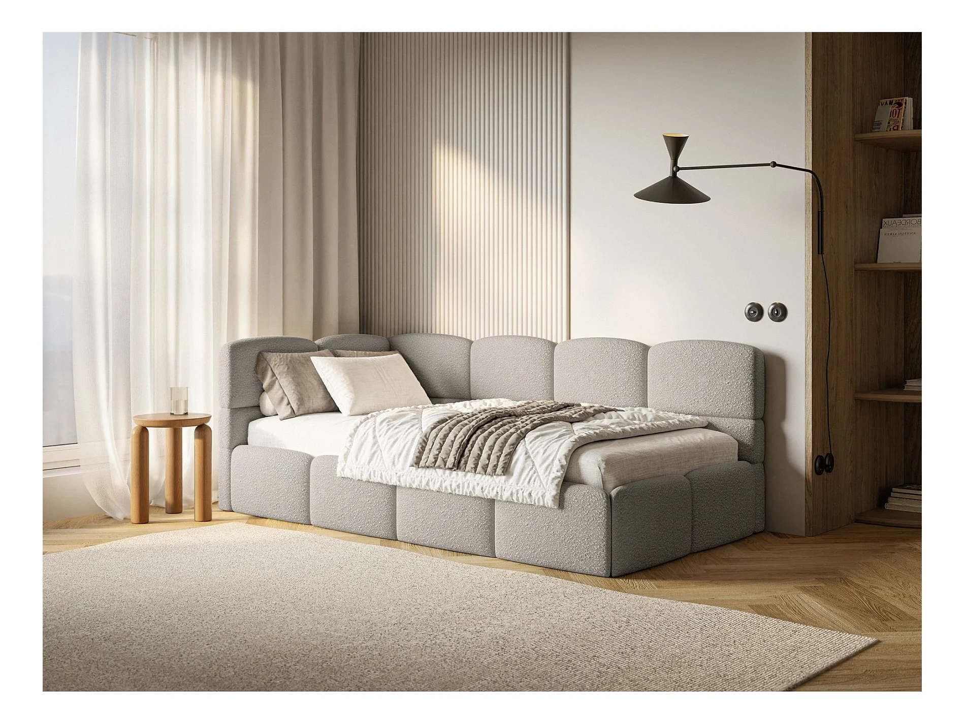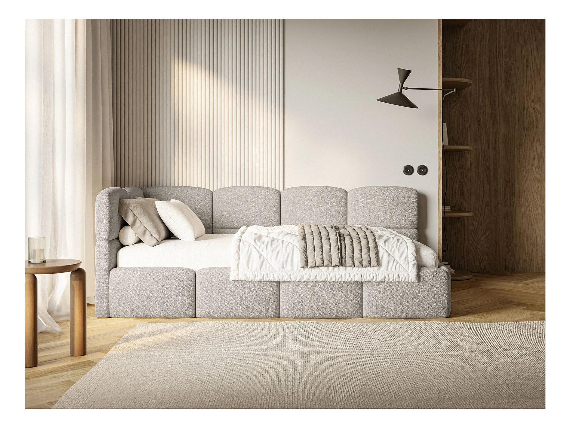 Lit ado avec coffre - grege - côté gauche - CLOUDY