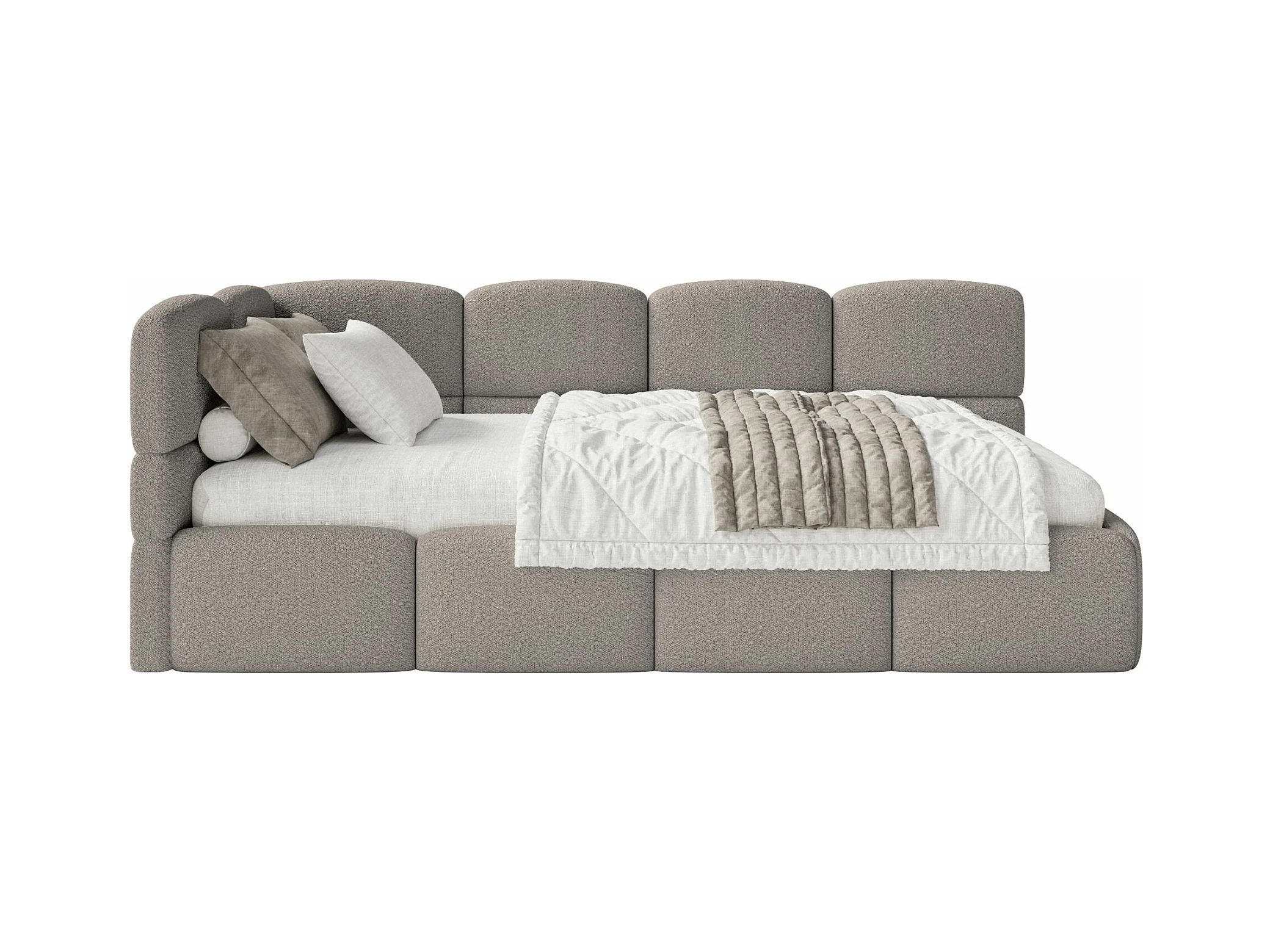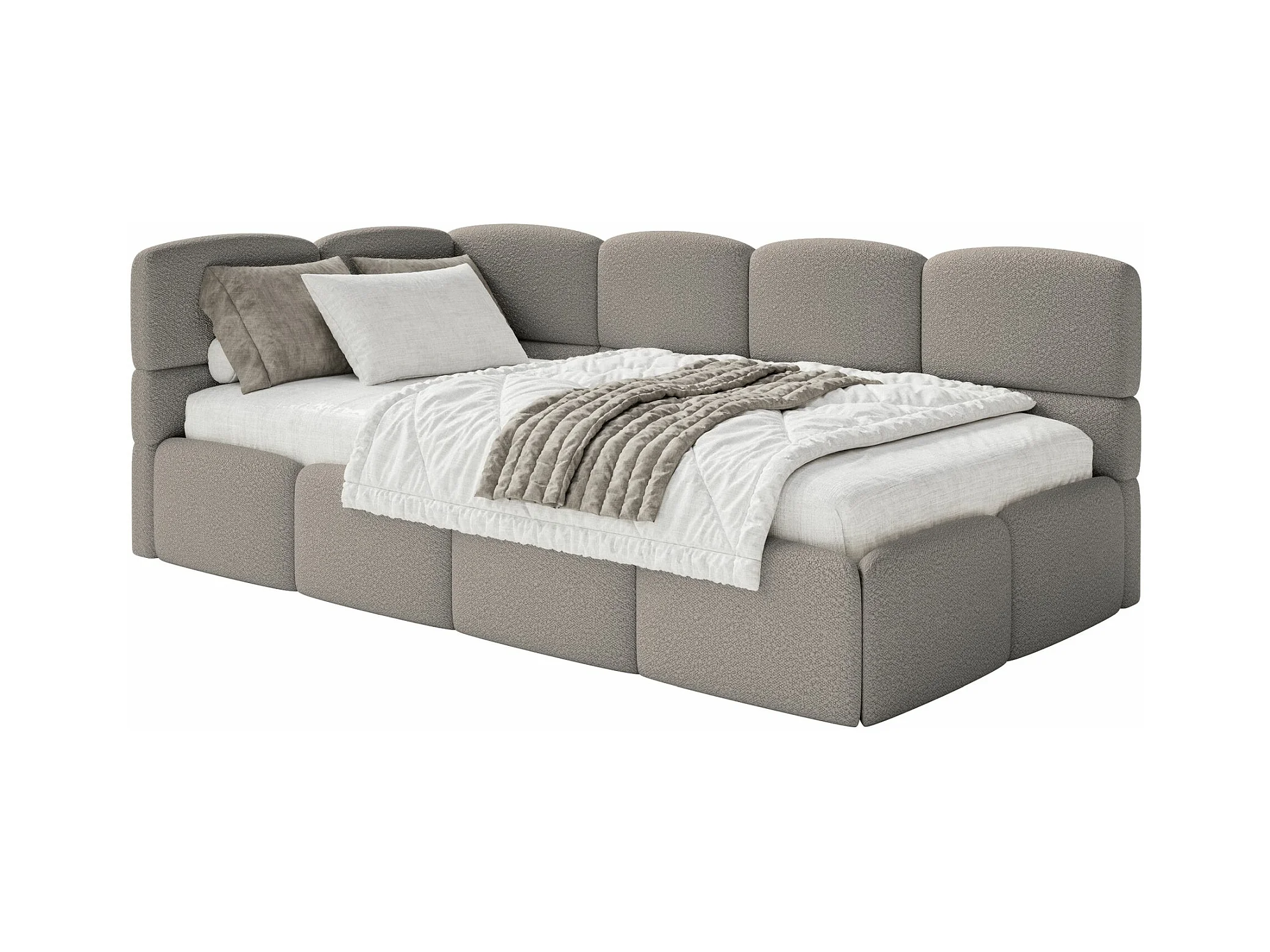 Lit ado avec coffre et barrières - gris - côté gauche - CLOUDY