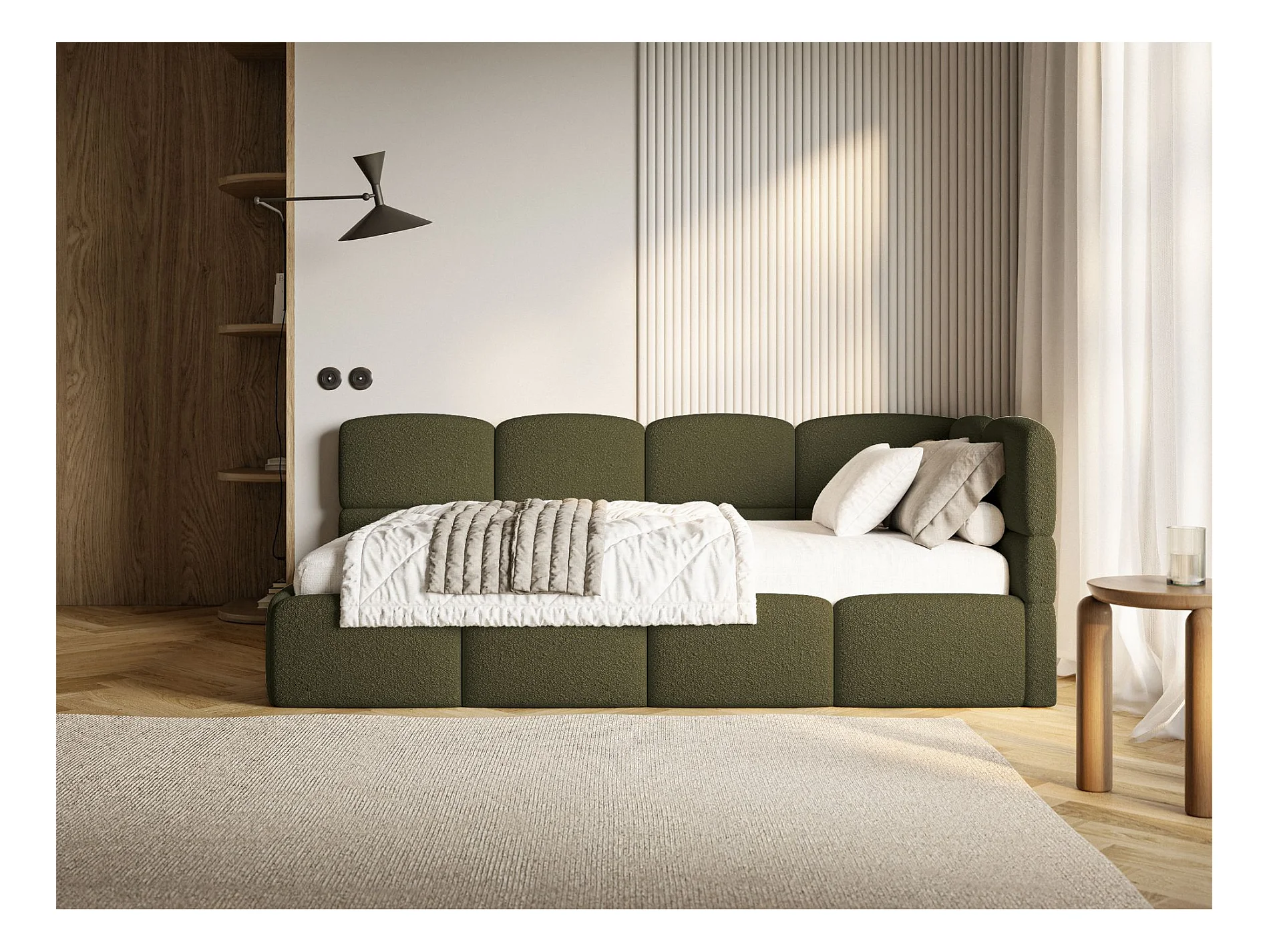 Lit ado avec rangement - olive foncé - côté droit - CLOUDY