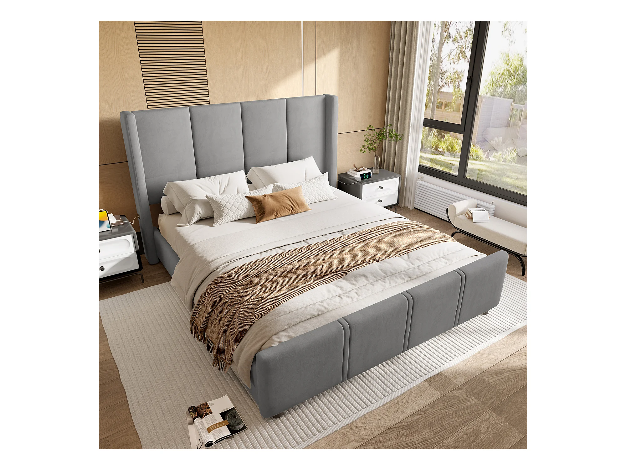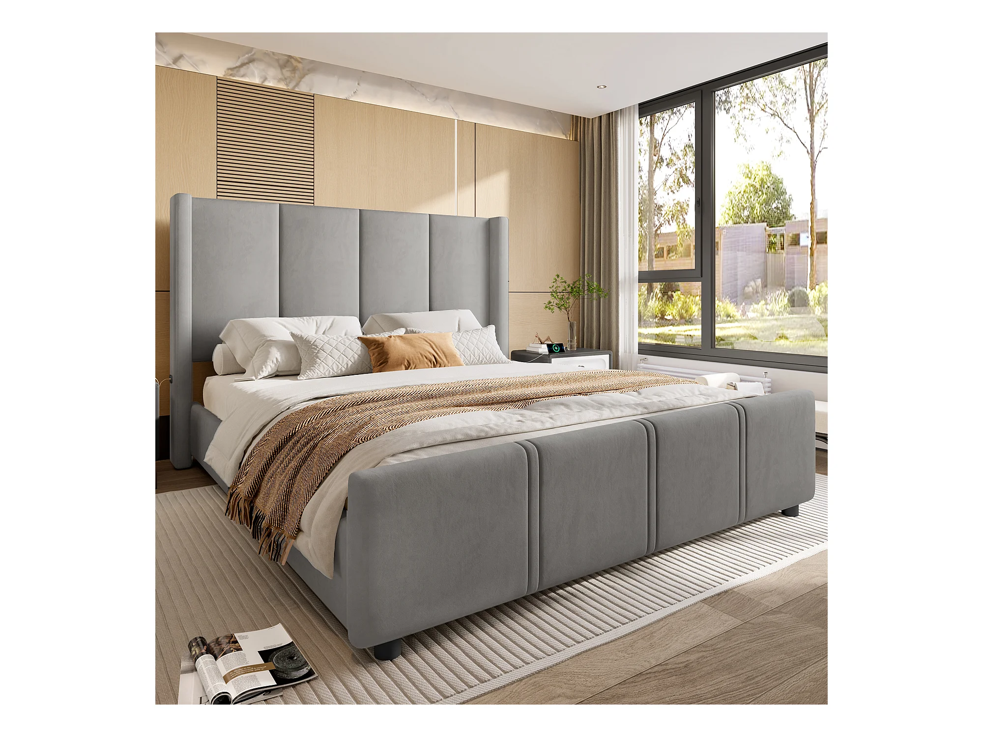 Lit adulte 160 x 200 cm - Cadre de lit avec recharge USB et tête de lit - gris - sans matelas