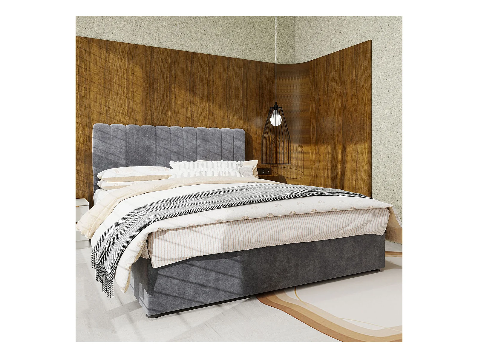 Lit adulte 160 x 200 cm - Lit avec tête de lit moelleuse et rangement - velours gris - matelas non inclus