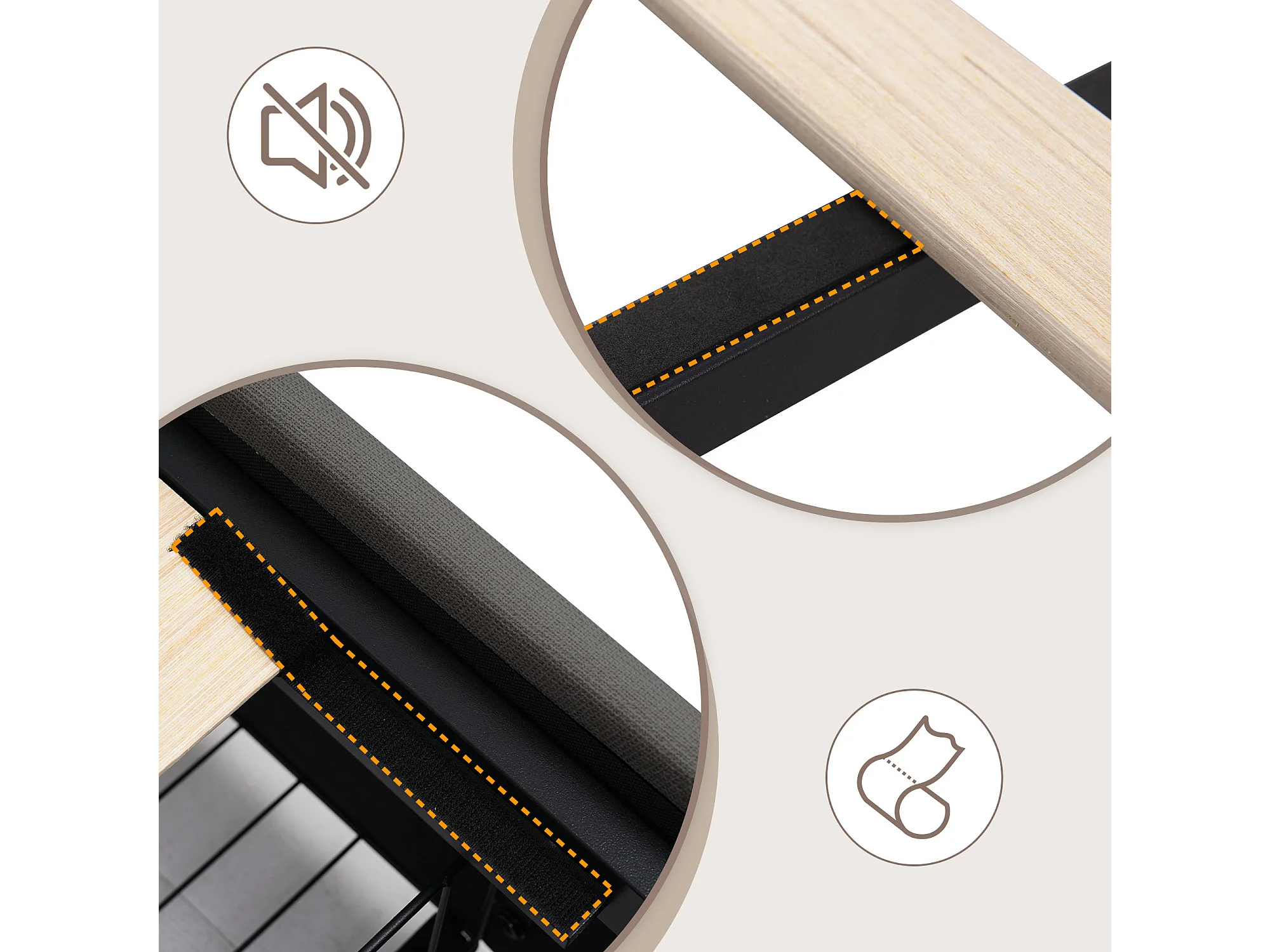 Lit adulte 160x200cm avec 4 tiroirs et LED, tête de lit réglable en hauteur, lin gris, sans matelas