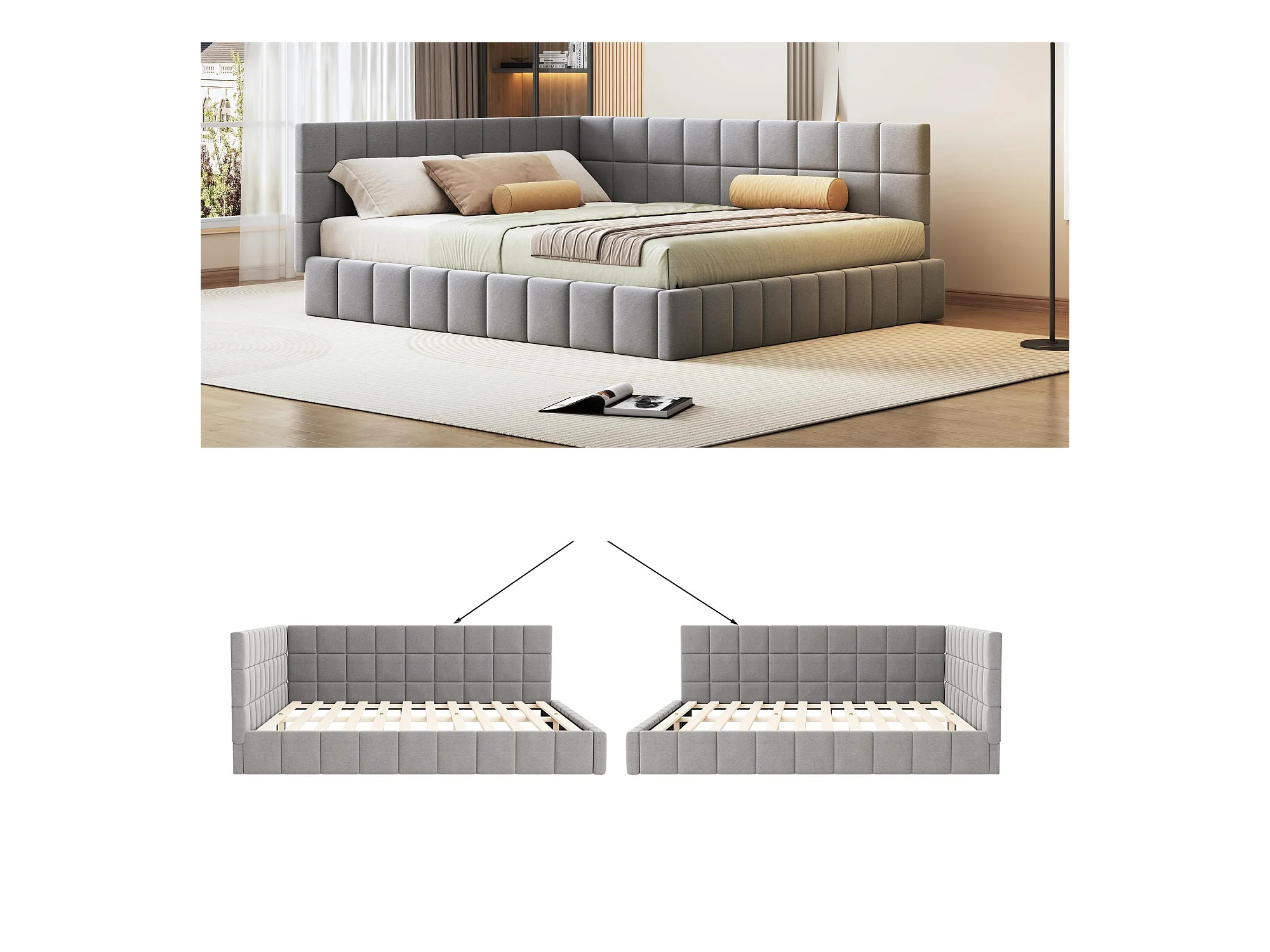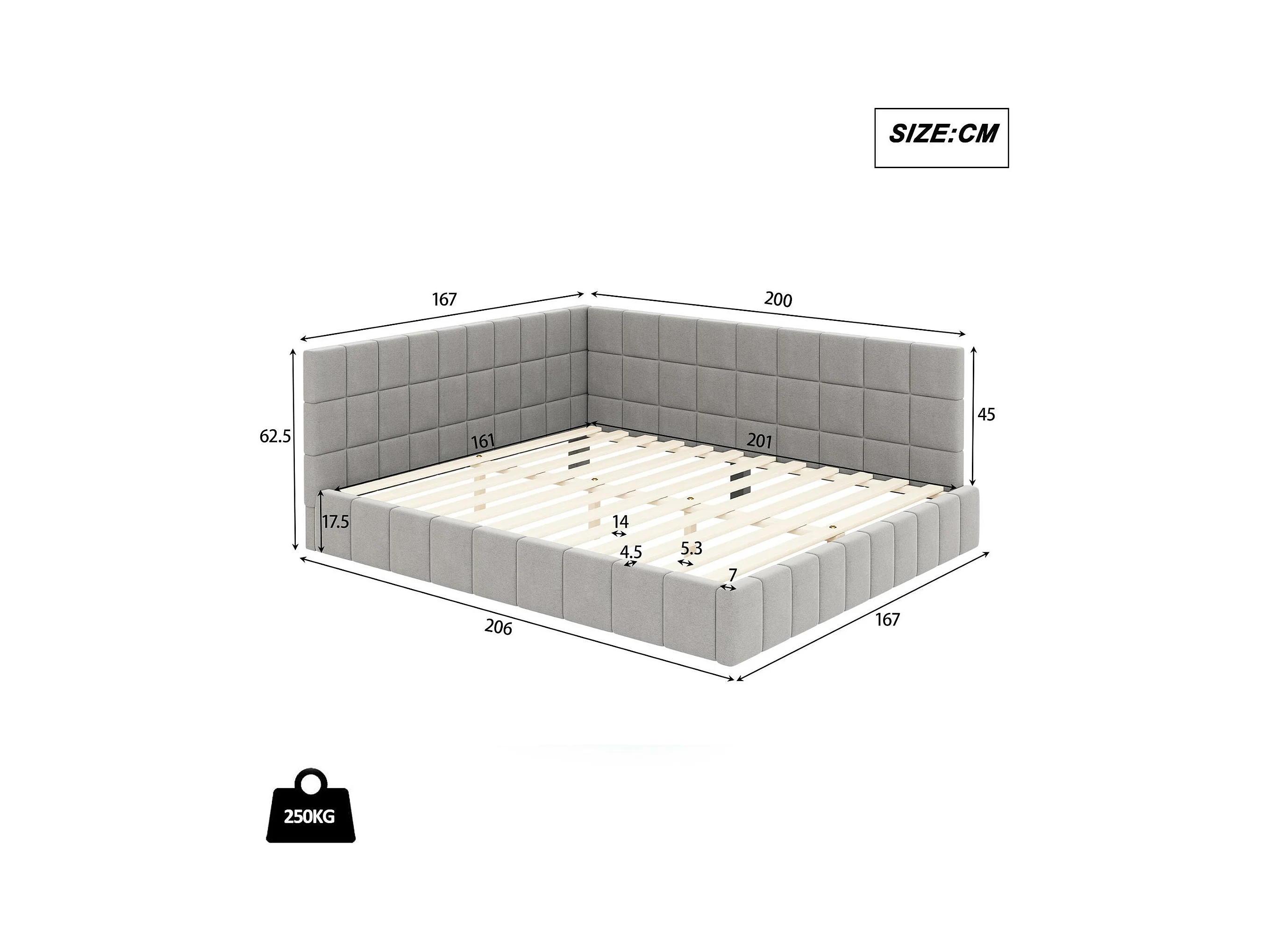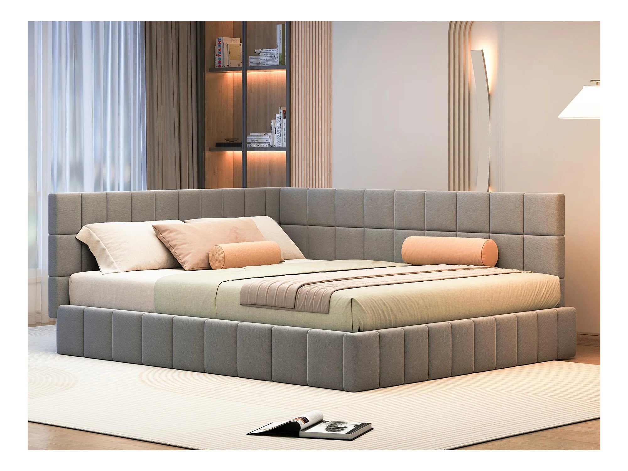 Lit adulte 160x200cm en velours avec clôture et sommier à lattes - Gris