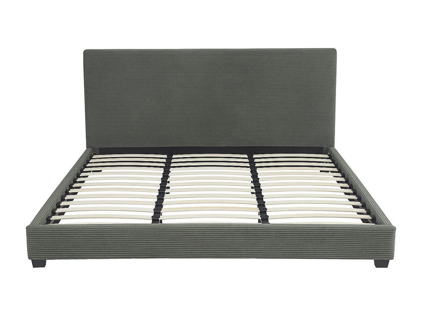 Lit adulte 180x200 cm avec tête de lit capitonnée en velours côtelé vert kaki - William