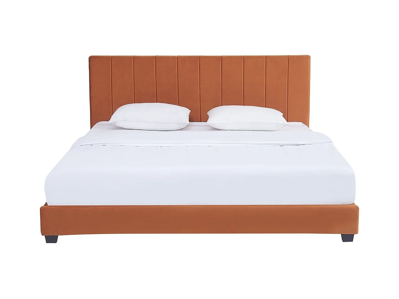 Lit adulte 180x200 cm avec tête de lit capitonnée en velours terracotta - William
