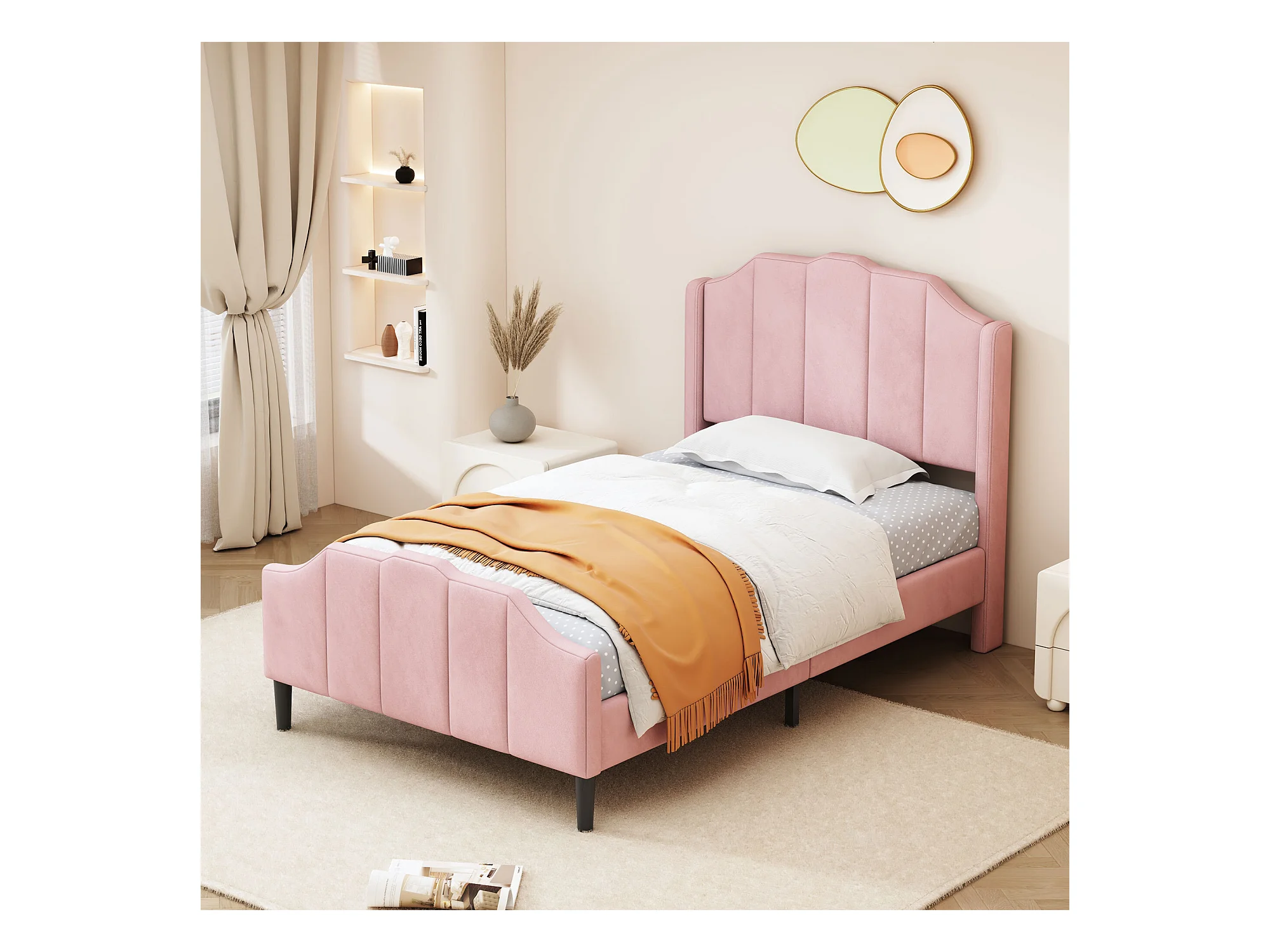 Lit adulte 90 x 200 cm - Lit double avec tête et pied de lit - velours rose - sans matelas