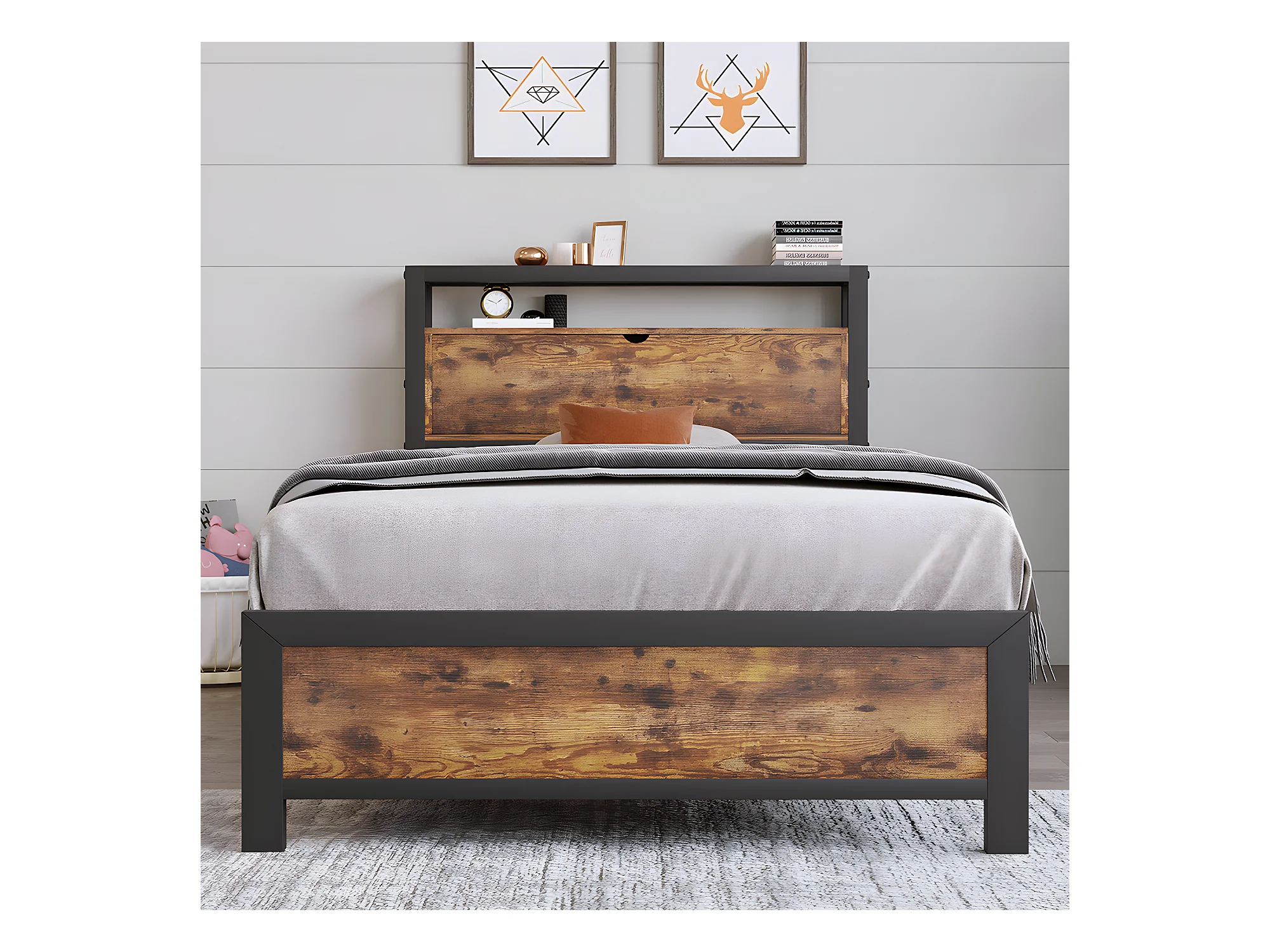 Lit Enfant avec Tiroir "Alex" 90x200cm Marron & Noir