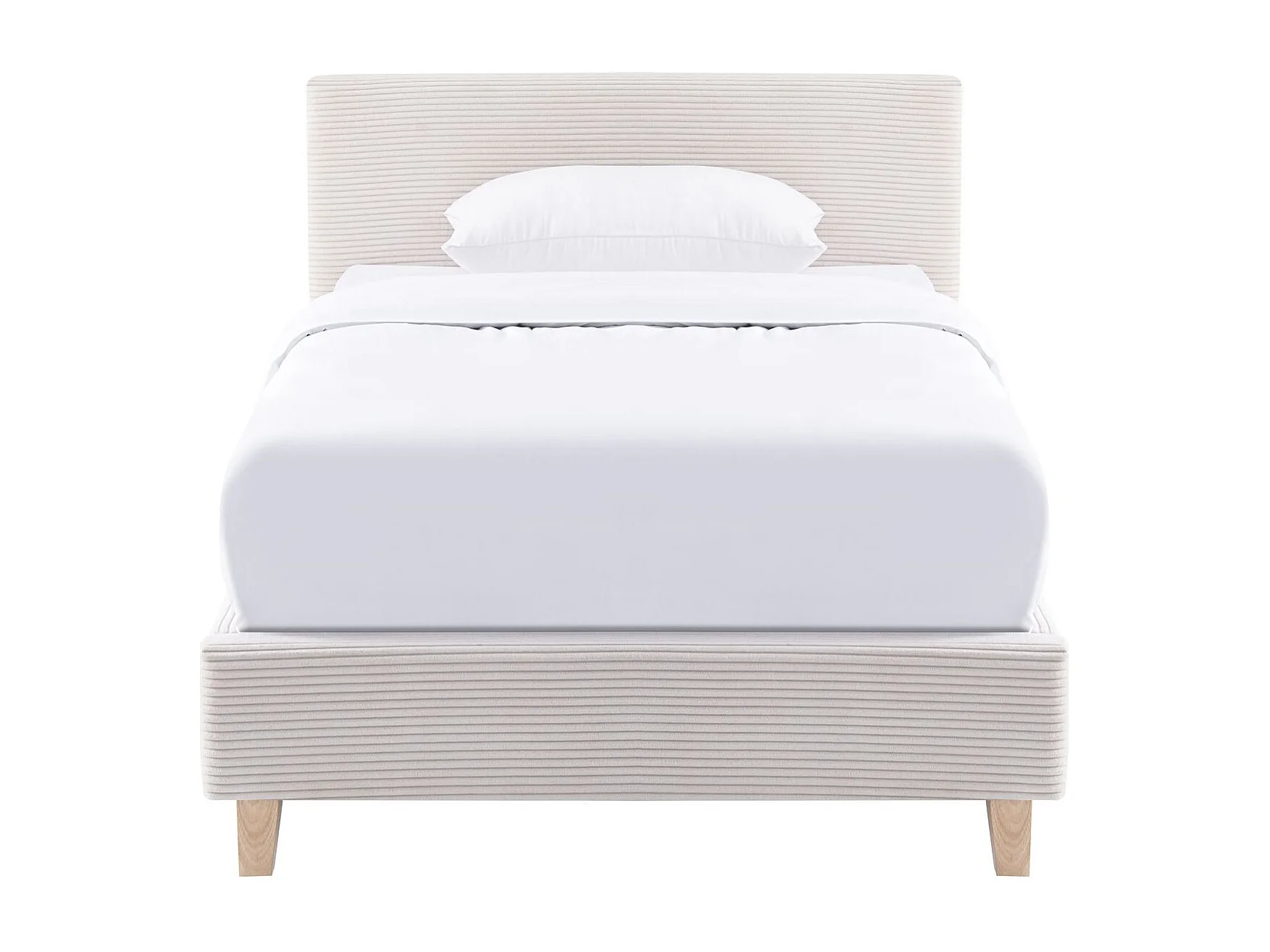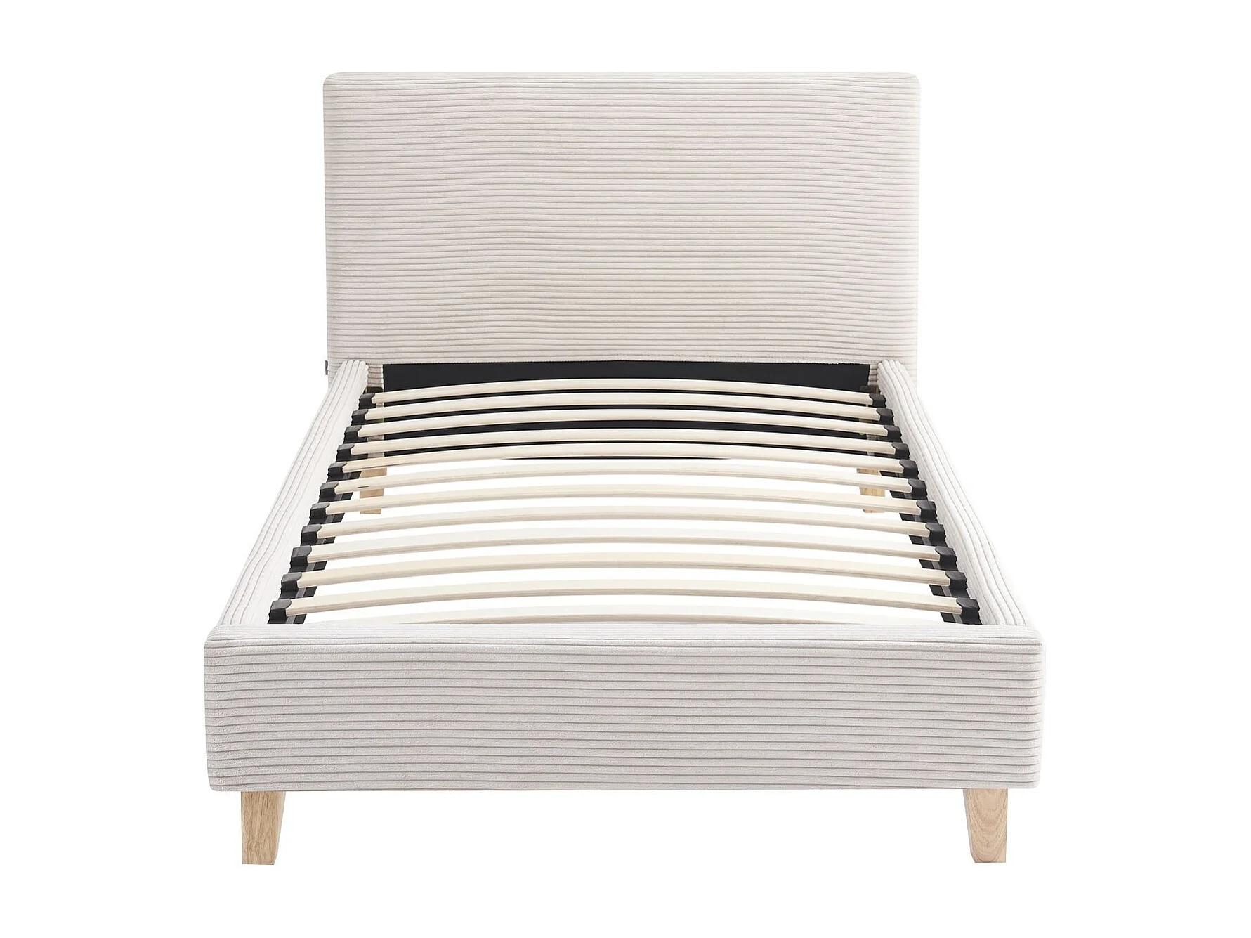 Lit adulte 90x190 cm avec tête de lit capitonnée en tissu beige - Milo