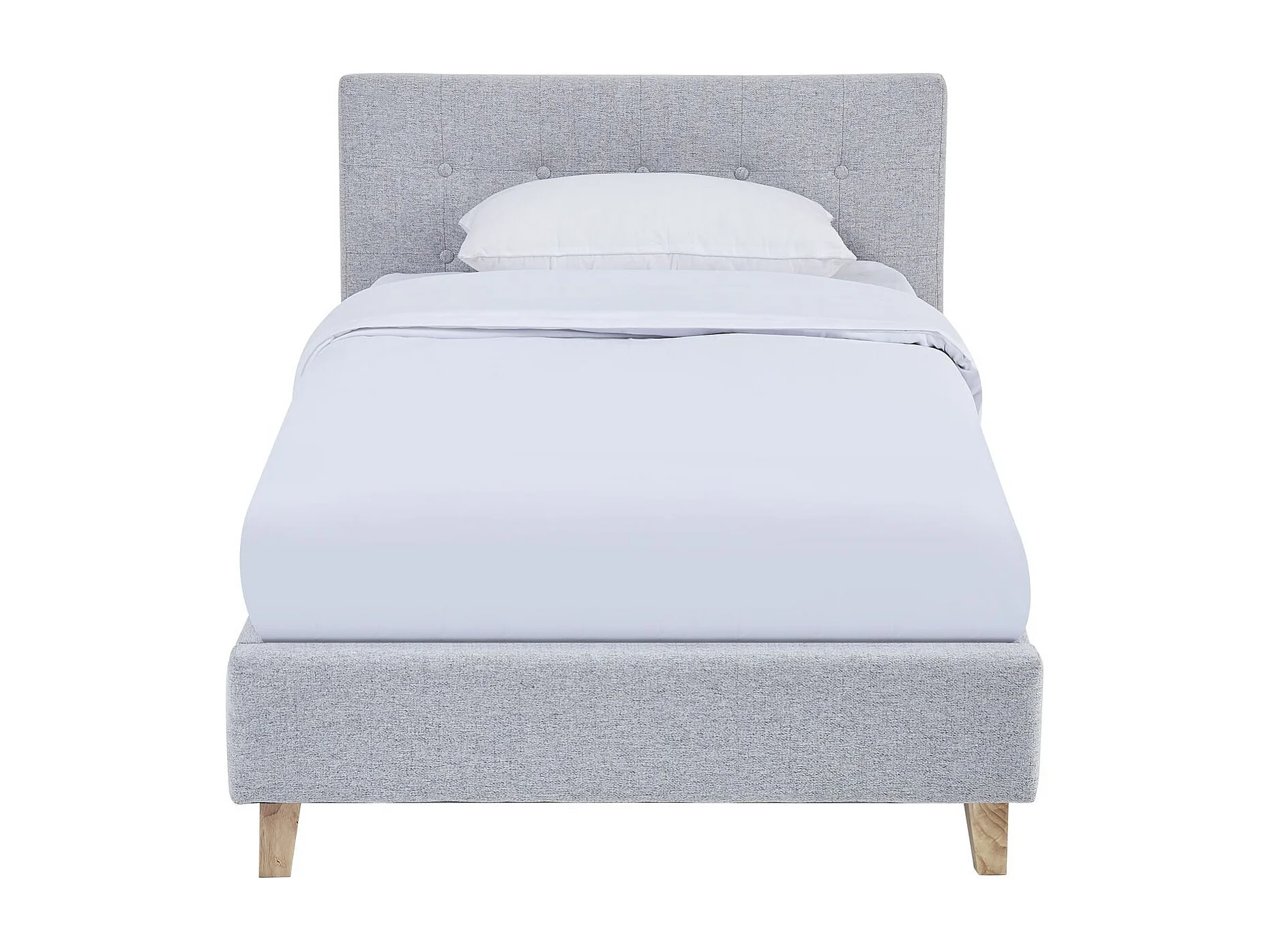 Lit adulte 90x190 cm avec tête de lit capitonnée en tissu gris chiné - Milo