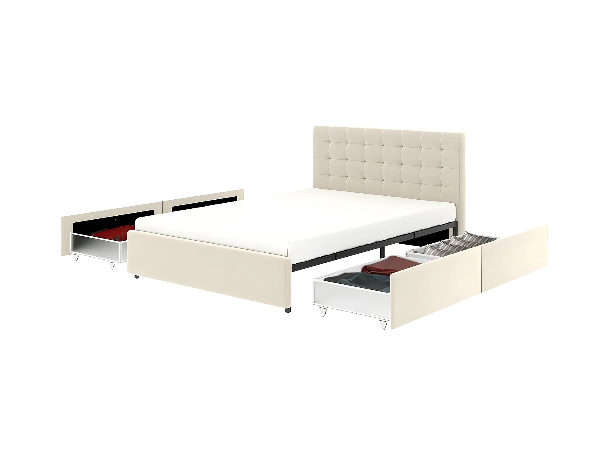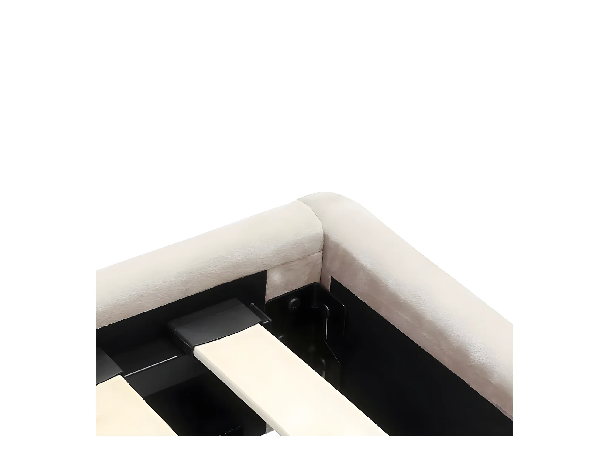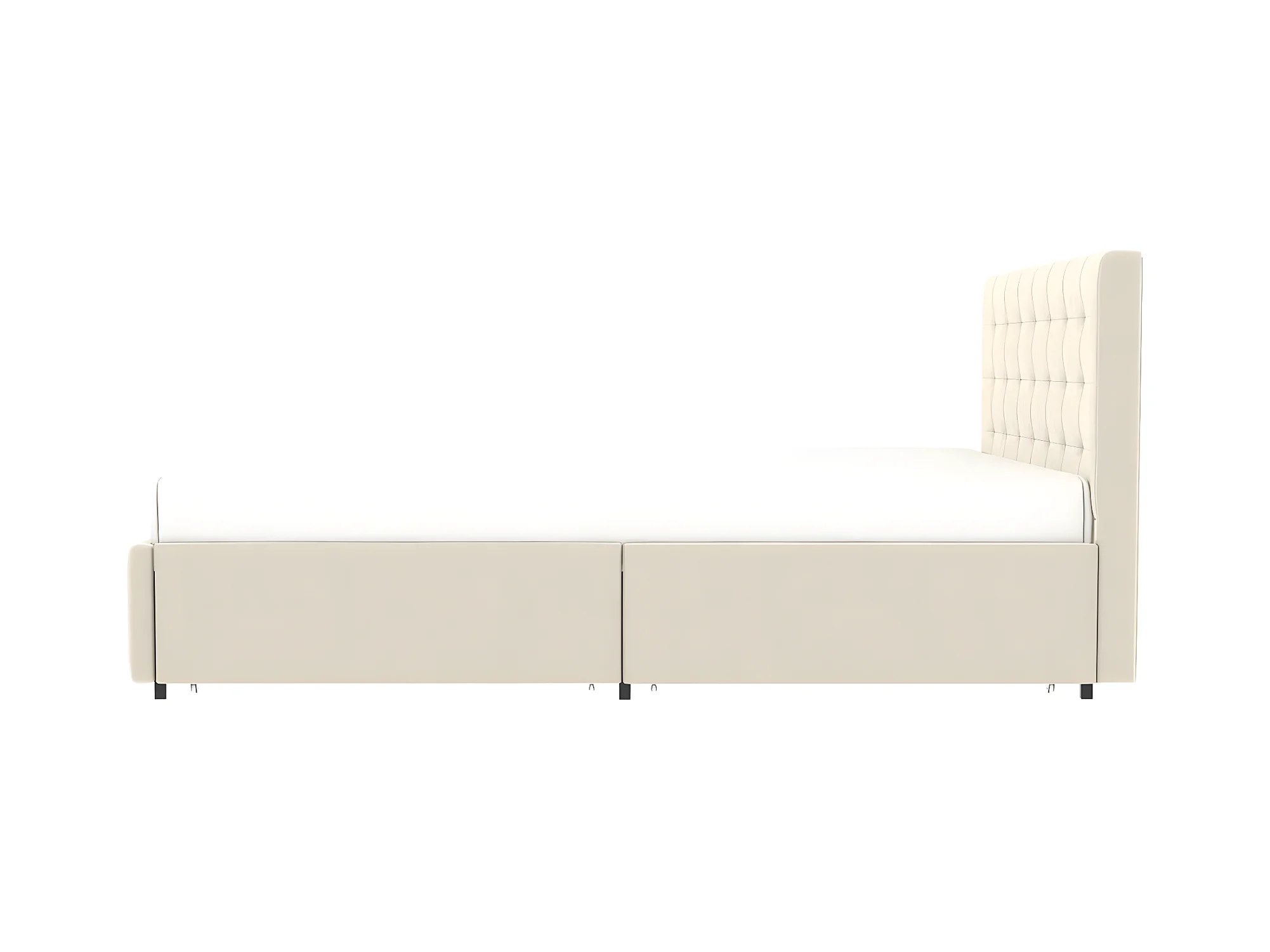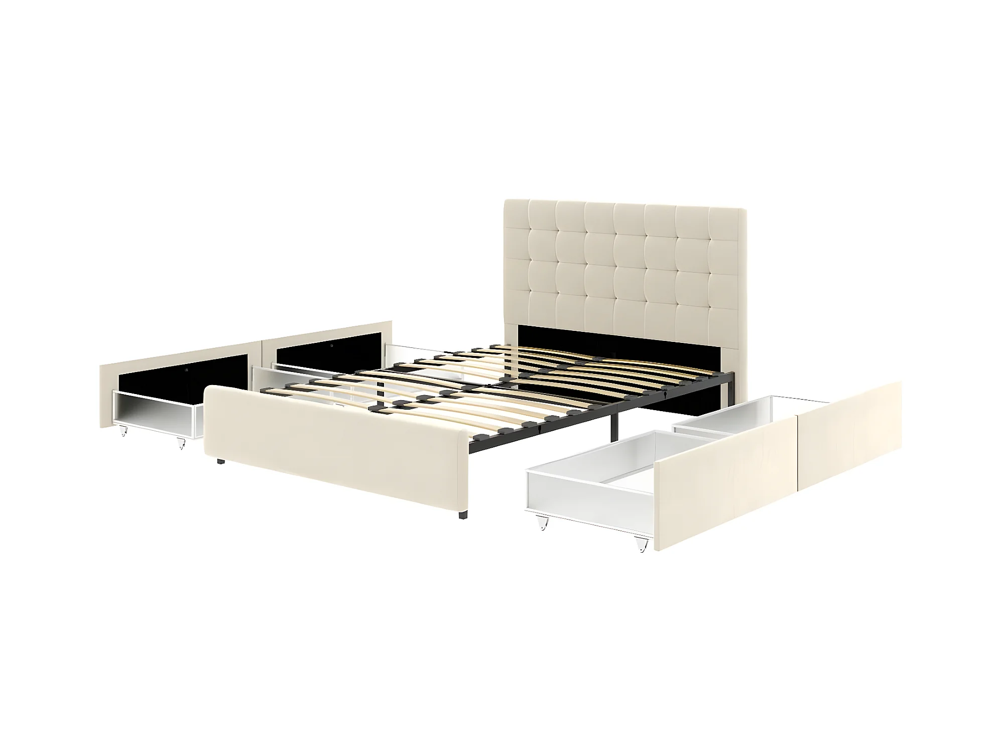 Lit tiroirs tête de lit capitonnée – couchage 140x190 cm – velours beige - sommier inclus - ELLIE