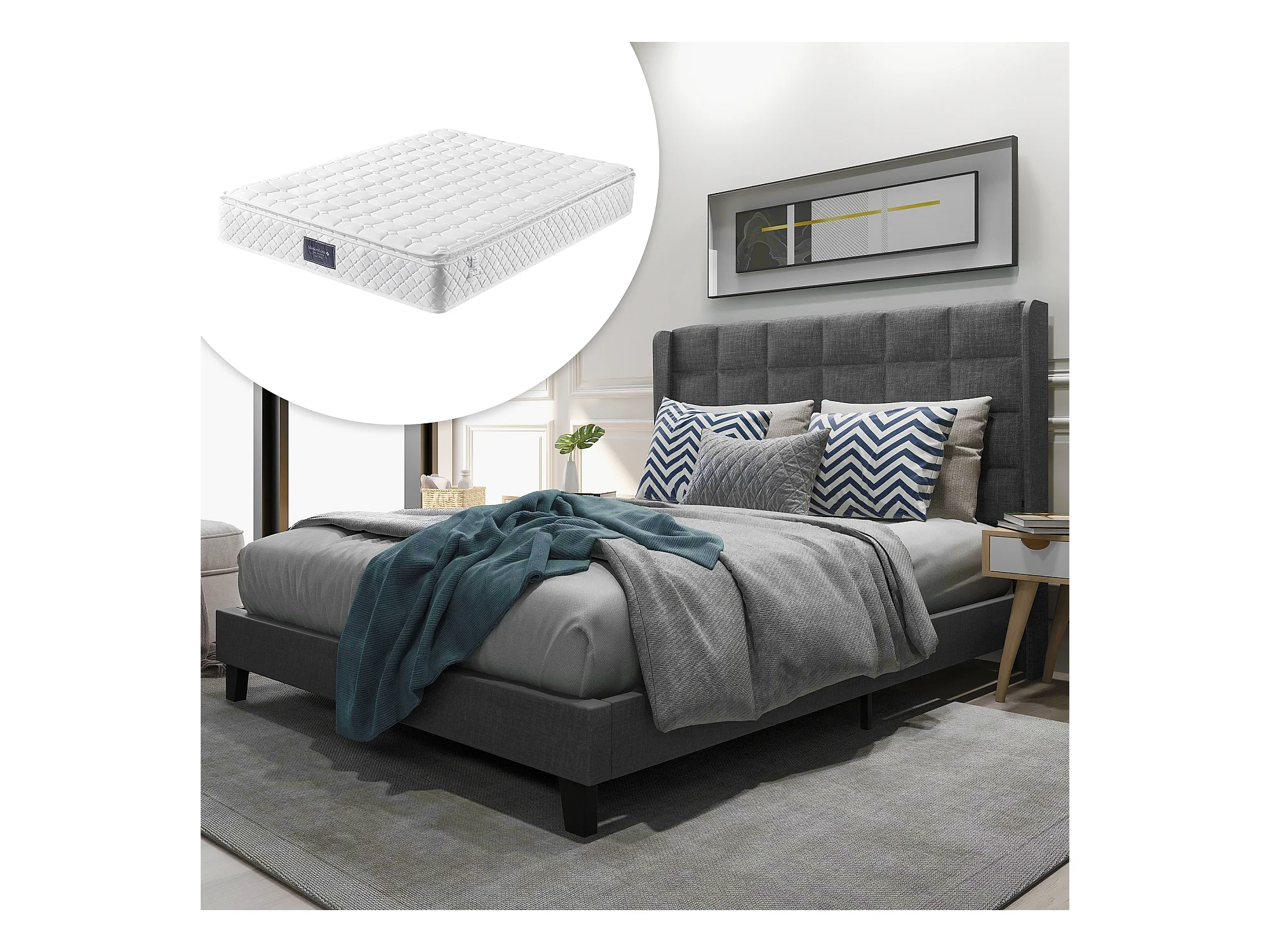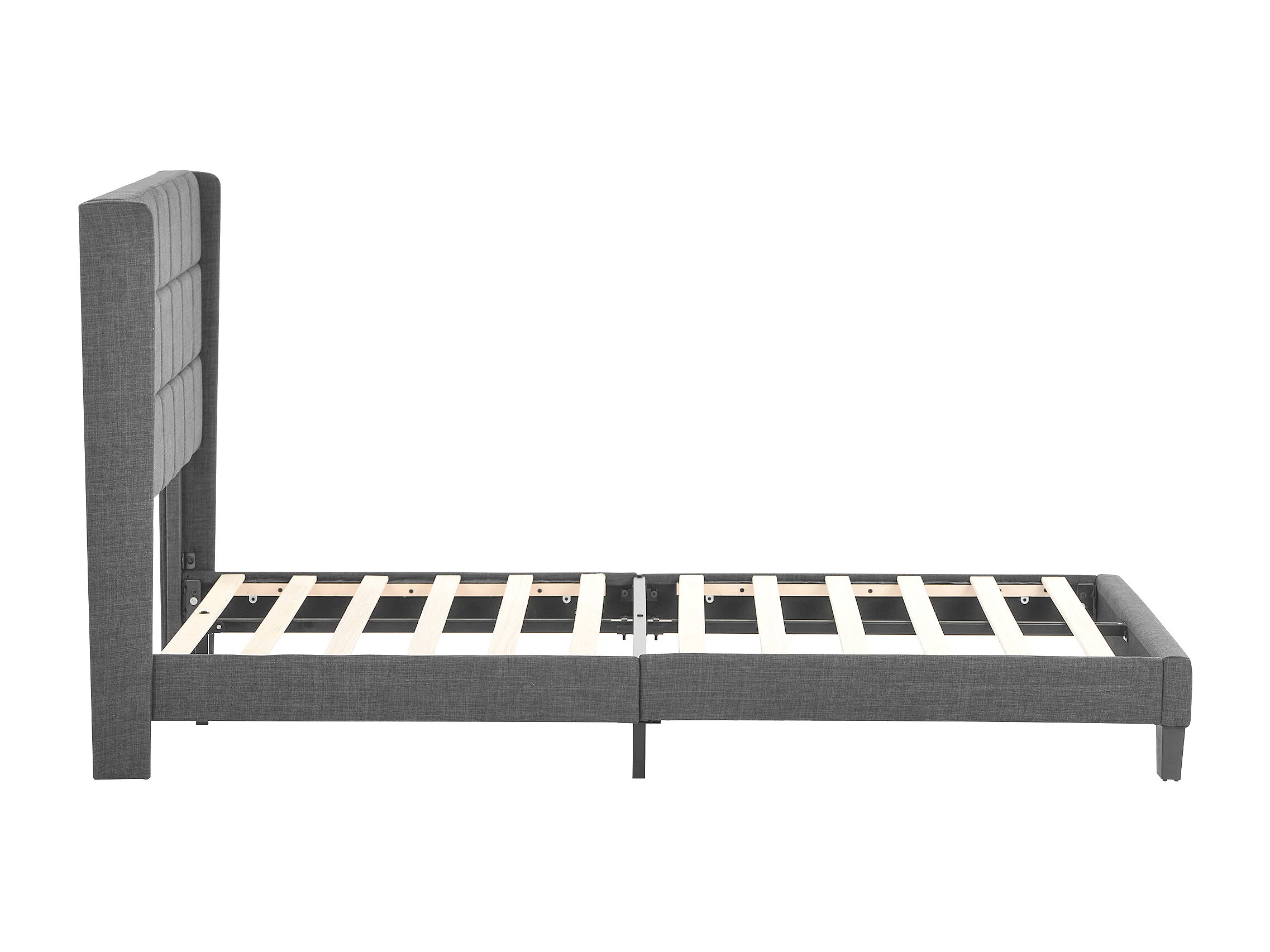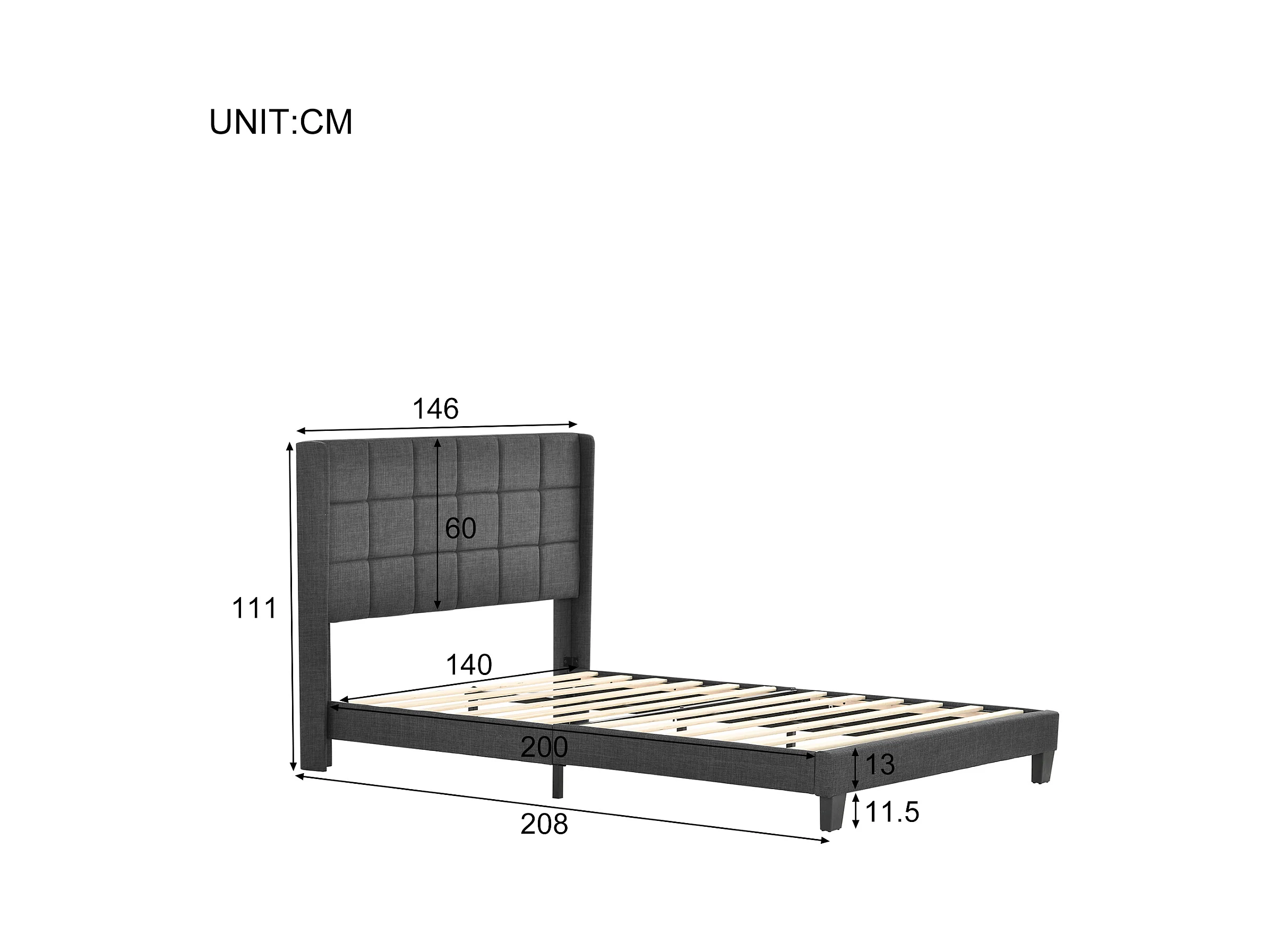 Lit adulte capitonné Tête de lit haute Design moderne 140x200 cm, lin gris - Sweiko