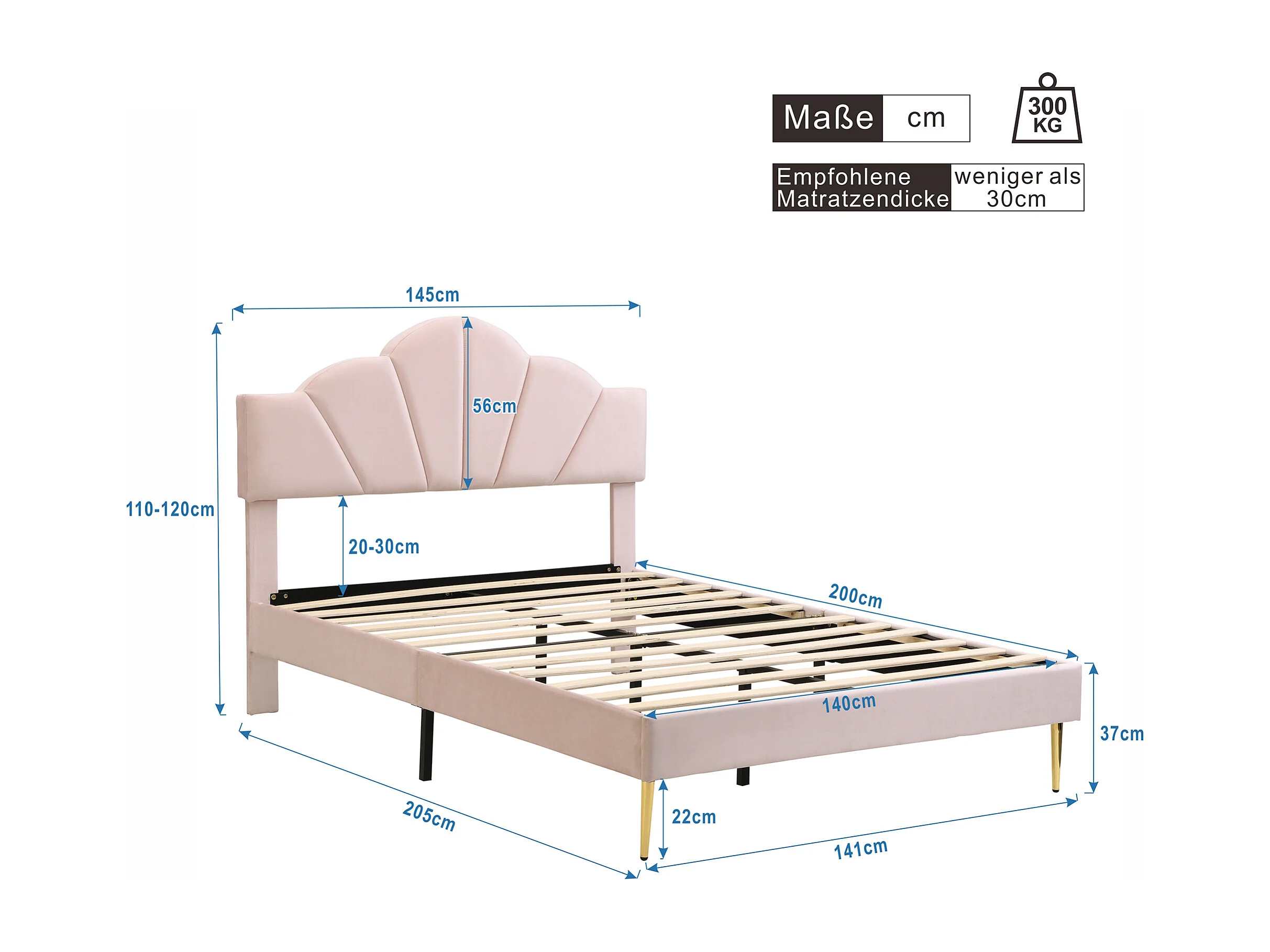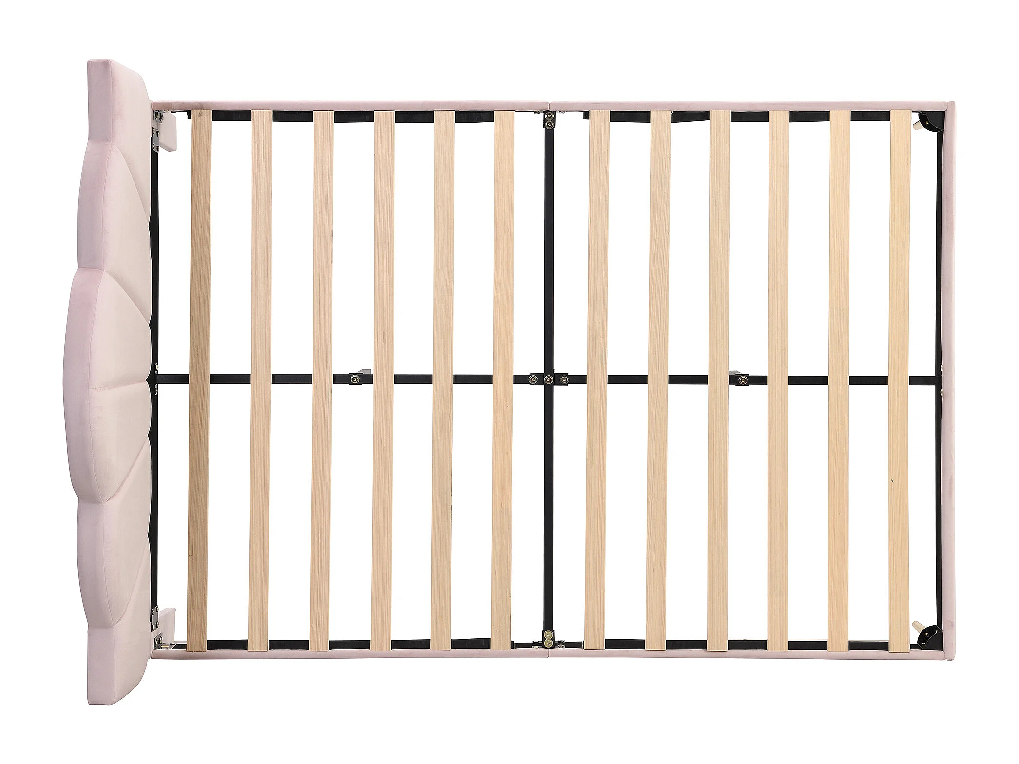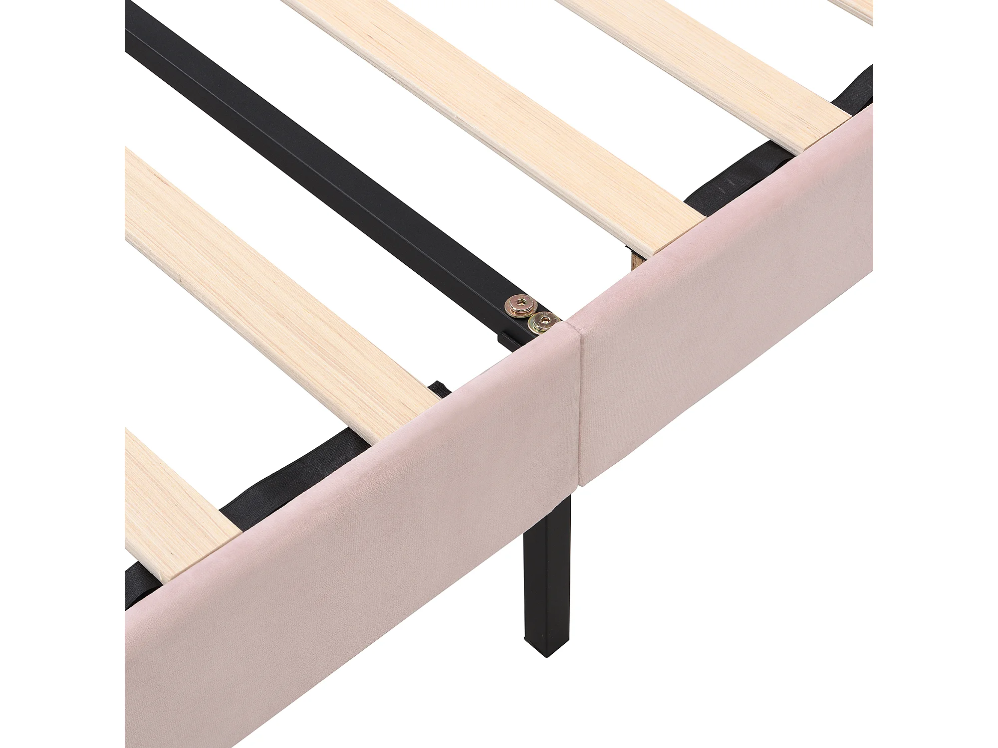 Lit adulte 140x200 cm avec sommier - tête de lit réglable en hauteur et pieds en métal - bois - velours rose (sans matelas)
