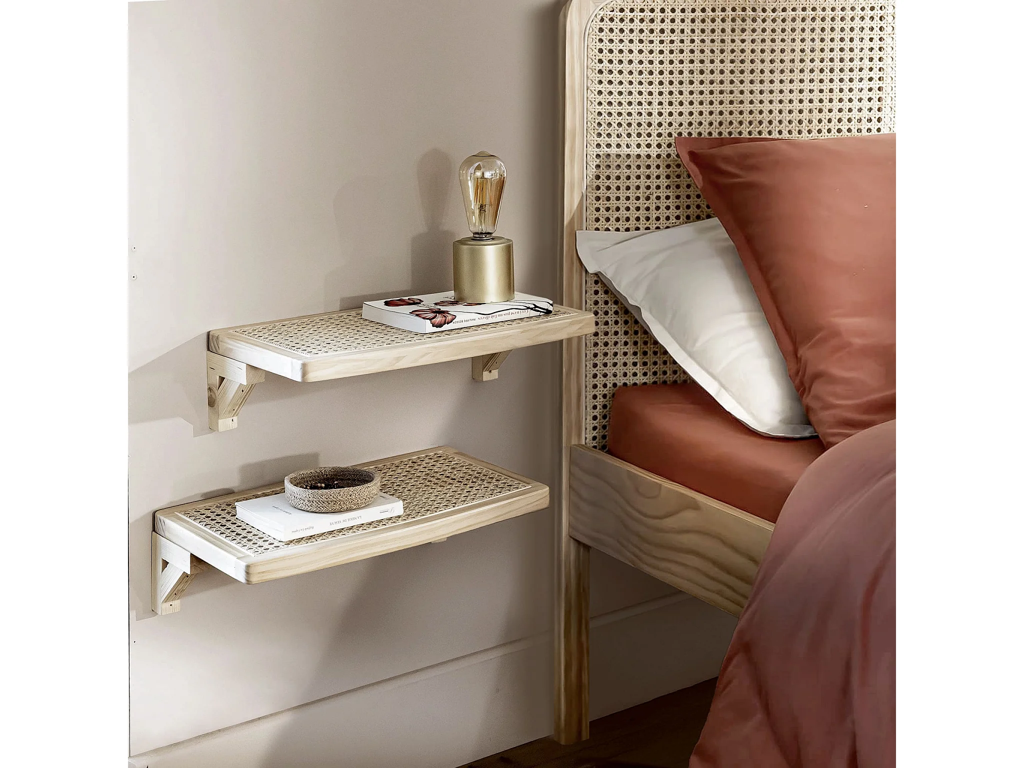 Lit adulte en pin massif tête de lit cannage ANNA 160x200 + set de 2 chevets cannage - ANNA